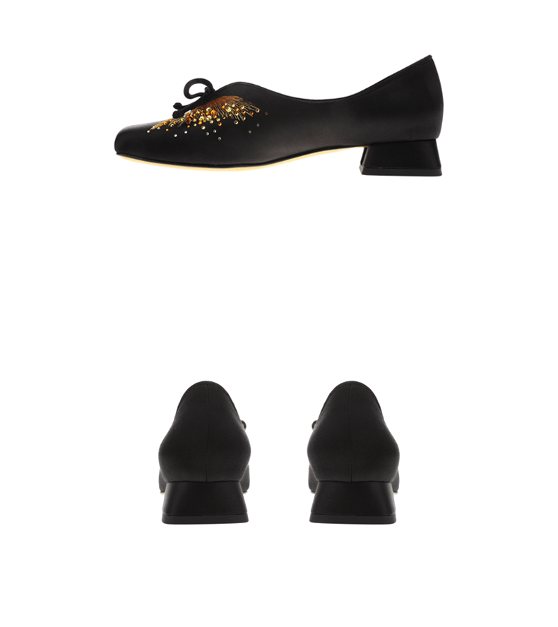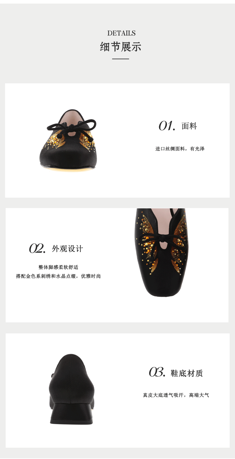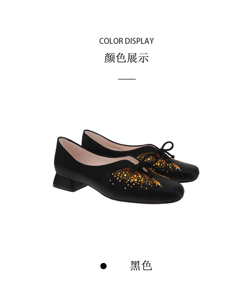 sheme新中式蝶舞飞扬系列原创设计刺绣水晶点缀优雅时尚粗跟女士单鞋可定制