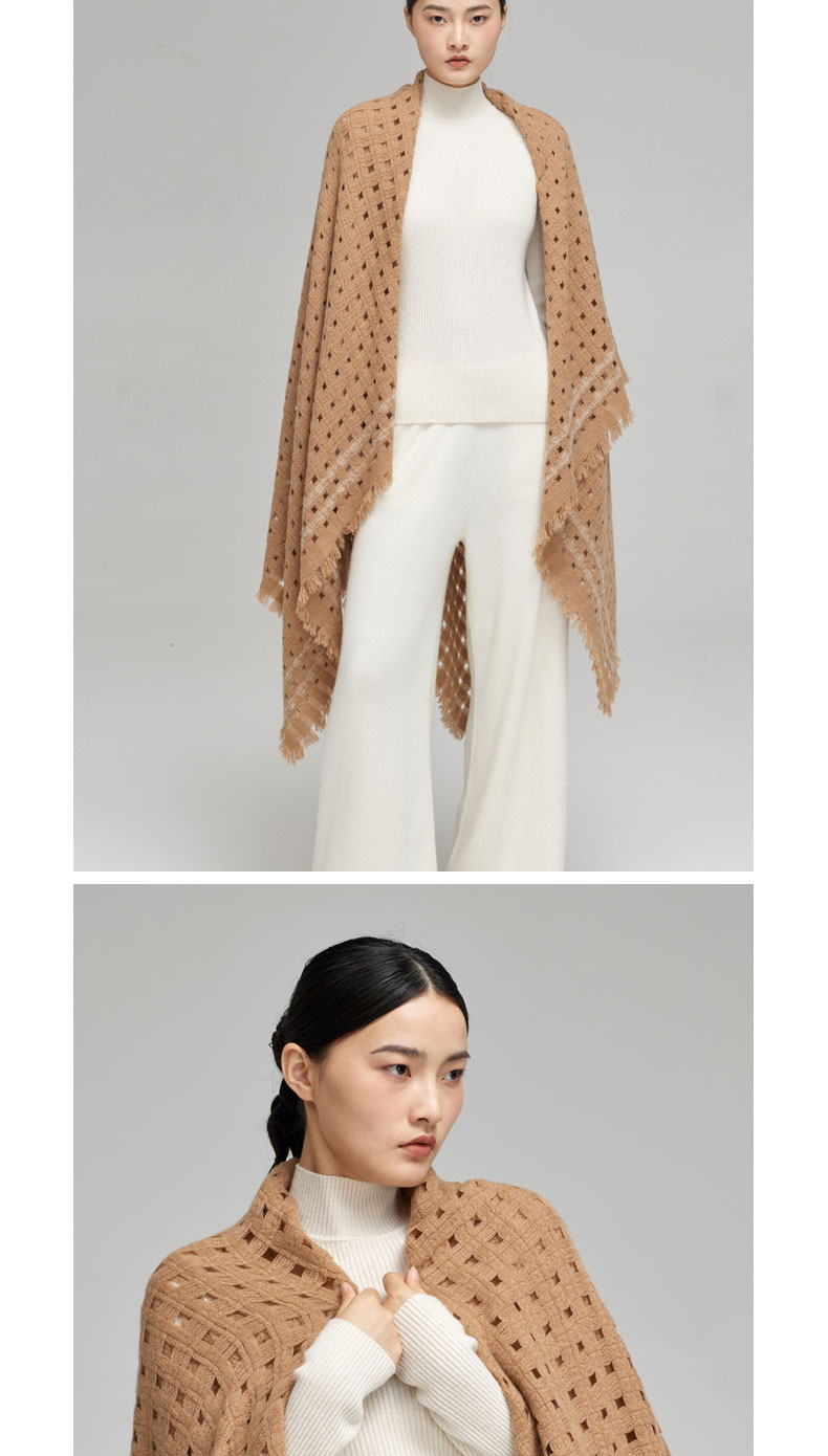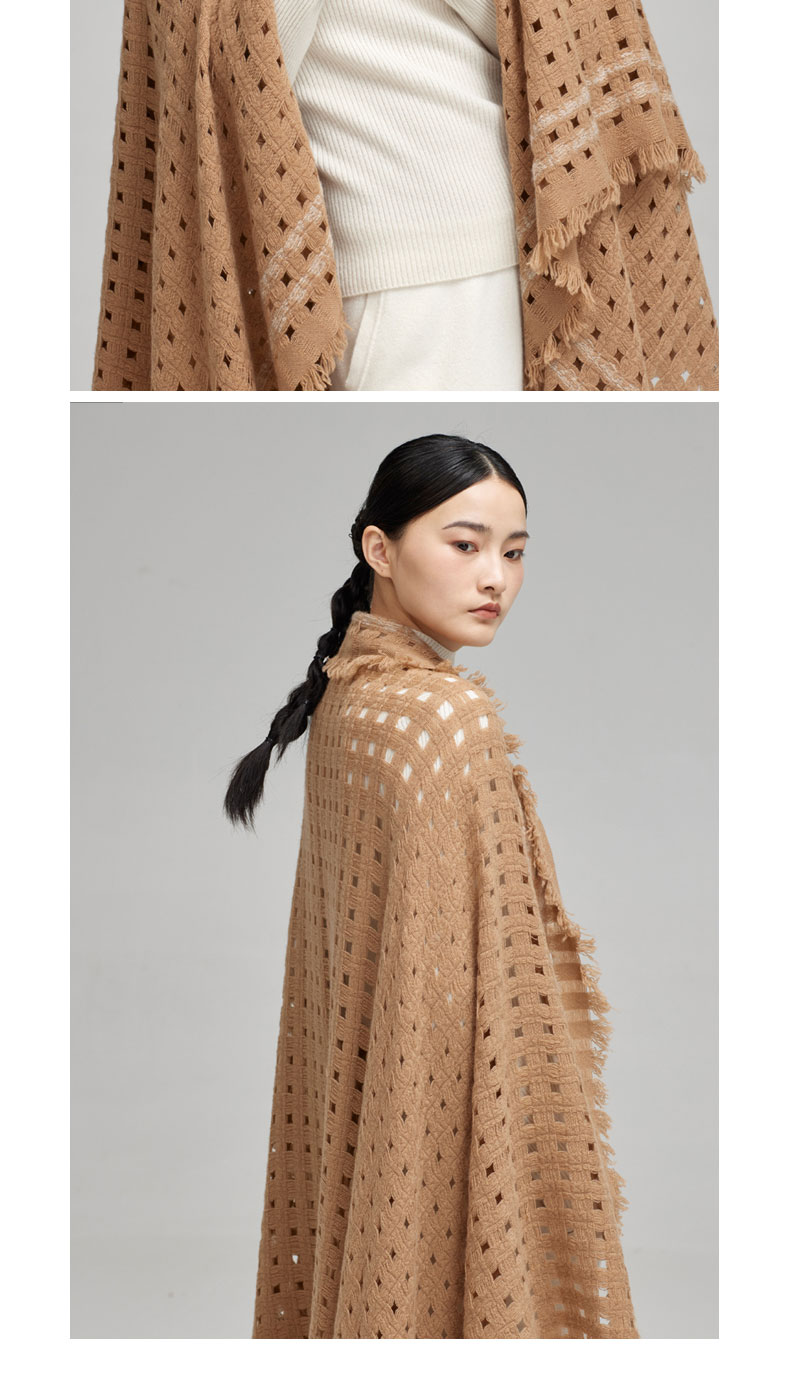 疗愈羊绒| 空调间围巾 2.0 系列 | 超薄素色大尺寸折边披肩 |时装周款 FDS18P769N