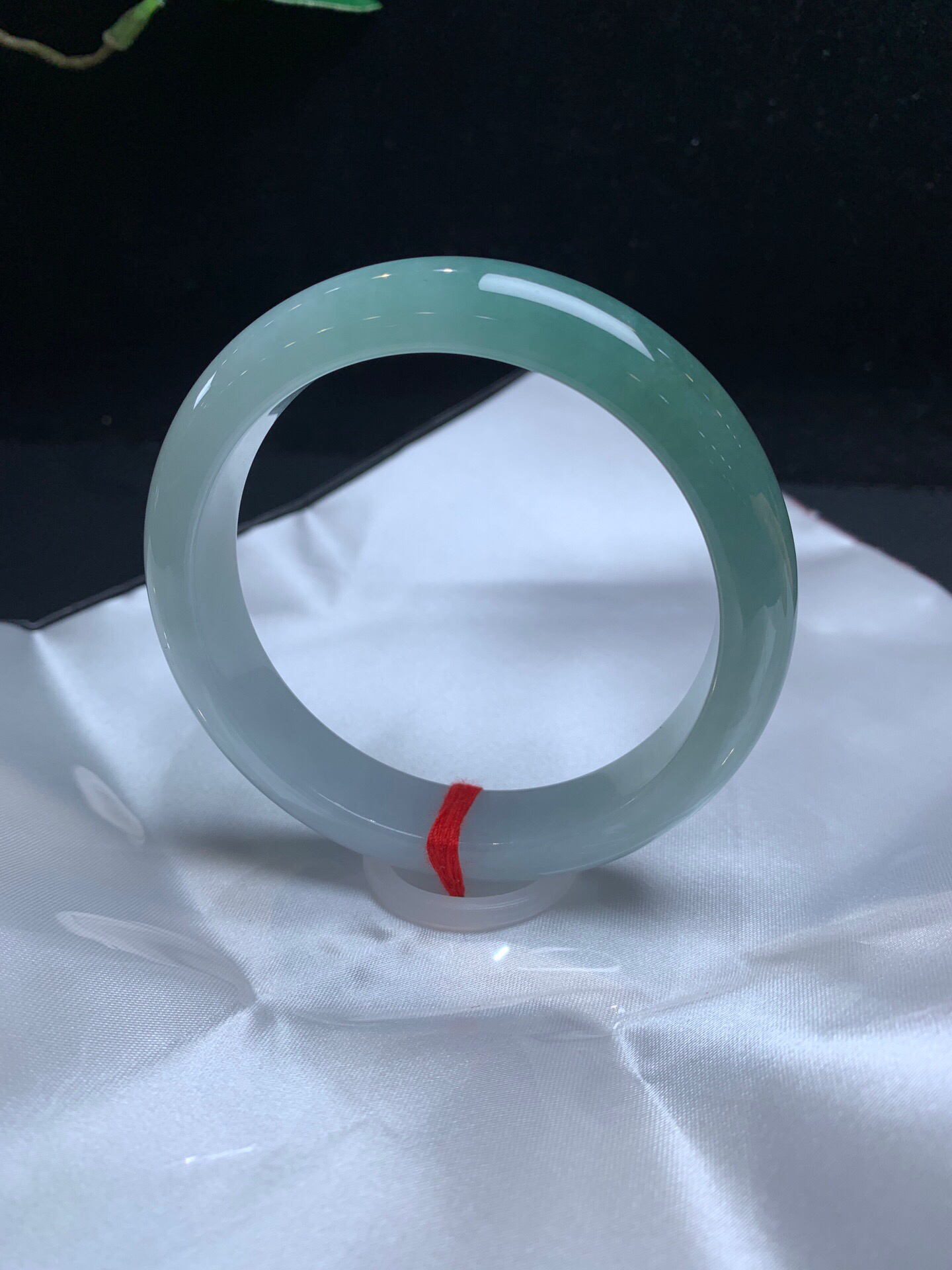 620726,56.3飘绿圆条手镯。12.5mm,条形好,整条带浅绿底,干净清爽,完美的