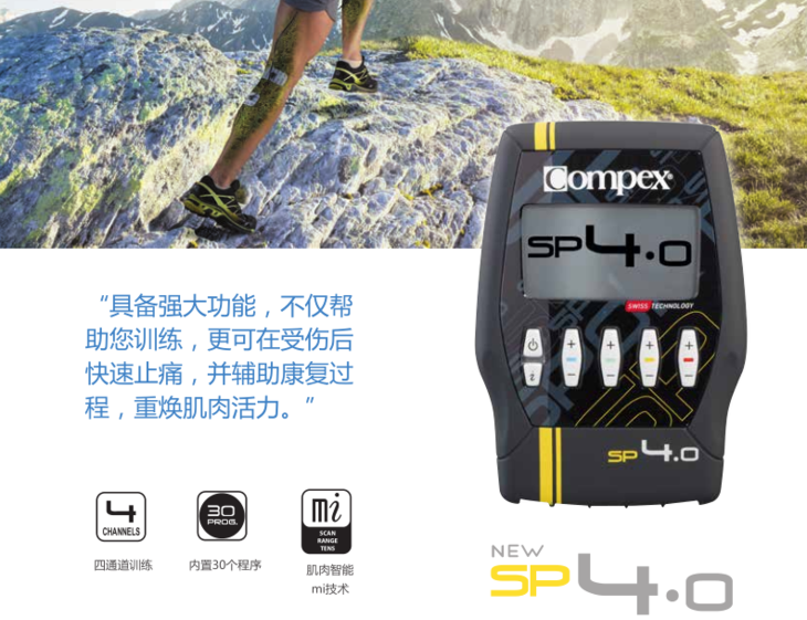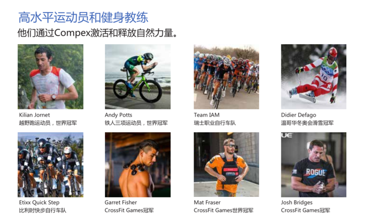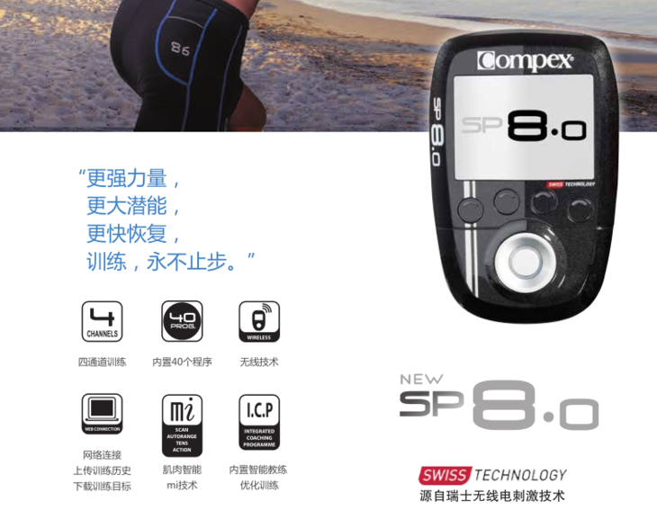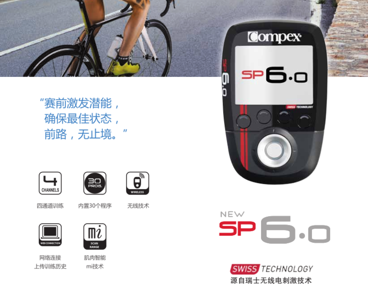 Compex源于瑞士并经过多年的实践,已经成为肌肉电刺激领域无可争议的领导者。目前广泛用于体能训练,健康恢复,减轻疼痛,形体塑造等。Compex拥有经过临床验证的精密技术,是提高运动成绩的最有效手段之一。