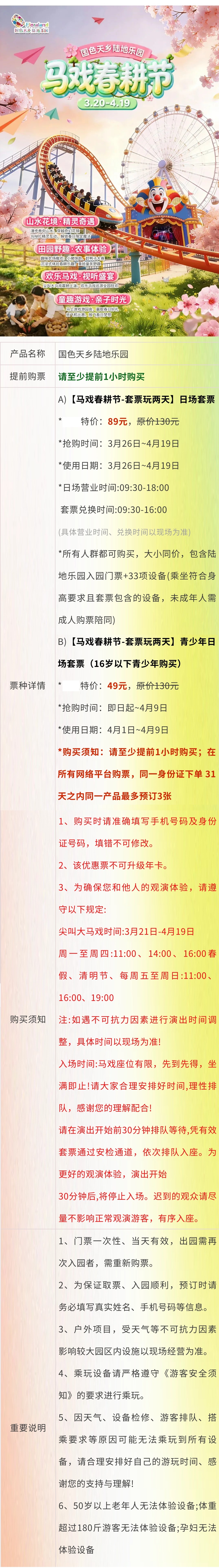 【国色天乡陆地乐园】尖叫大马戏狂欢登场49元起~就在国色天乡陆地乐园马戏春耕节>>>更有魔法农场农事体验,马上趣味游戏欢乐赢年卡!!!