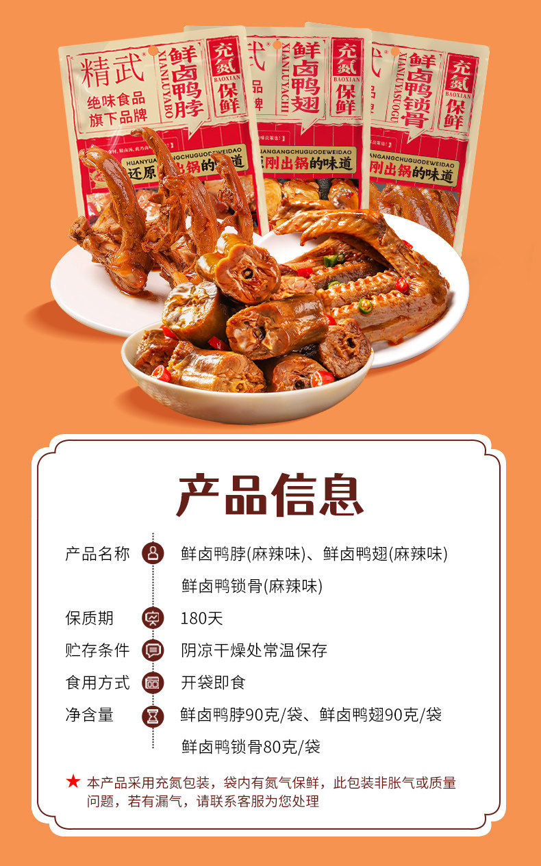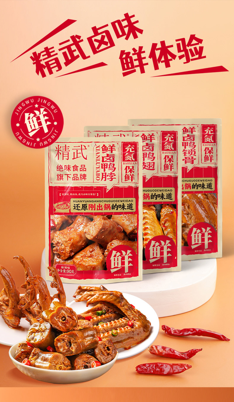【宜昌助农馆】精武 新品鲜卤系列 麻辣零食充氮保鲜夜宵小吃鸭翅熟食解馋休闲卤味