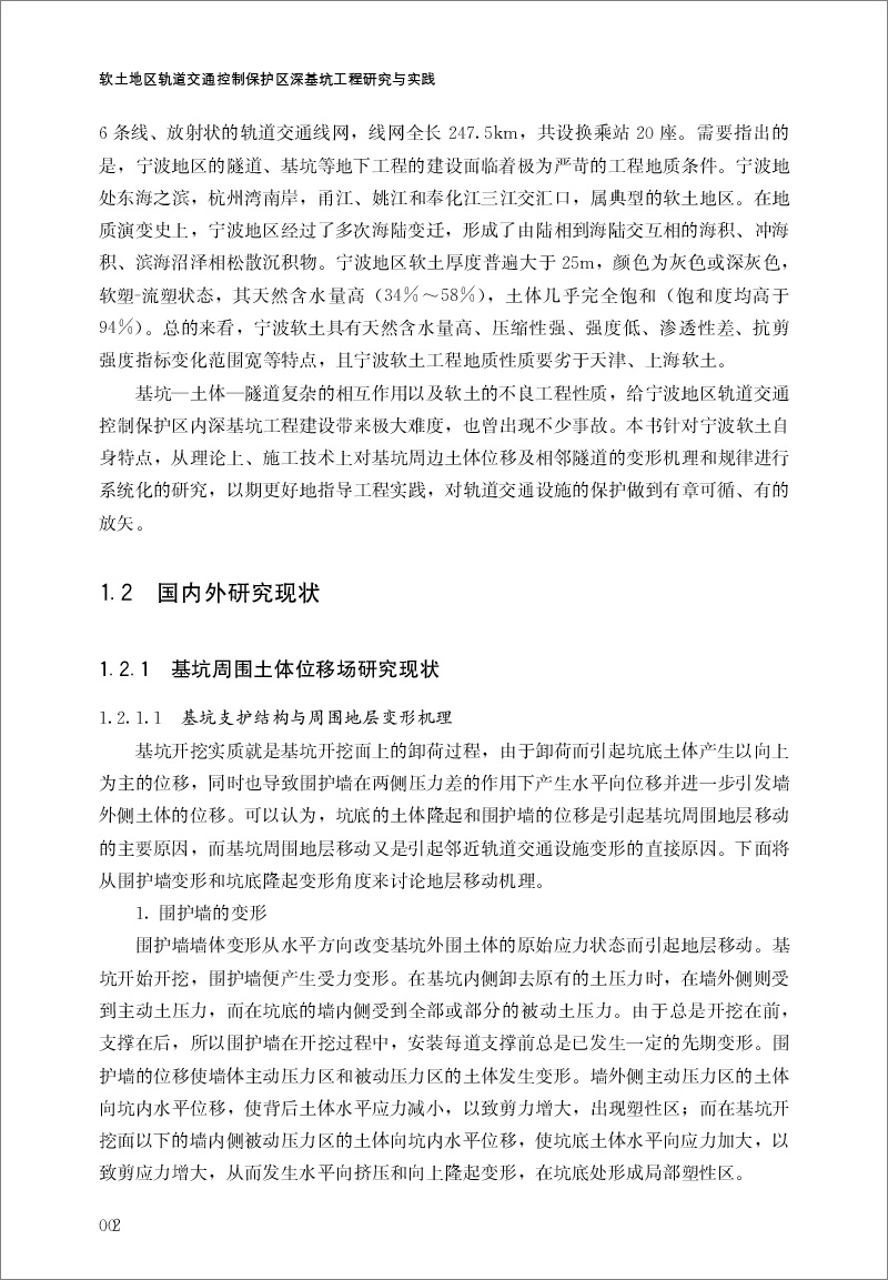 本书从理论计算和施工实践两个方面,对软土地区深基坑施工过程中轨道交通结构和相关保护措施进行研究分析,并介绍了多个成功的基坑轨道交通结构保护工程案例,为软土地区基坑轨道交通结构的保护提供理论指导和实践依据。本书主要内容包括宁波软土地区深基坑变形规律研究、减小基坑开挖对隧道的影响及控制、桩墙施工对邻近隧道的影响及控制以及四个地铁保护区工程实践案例。
