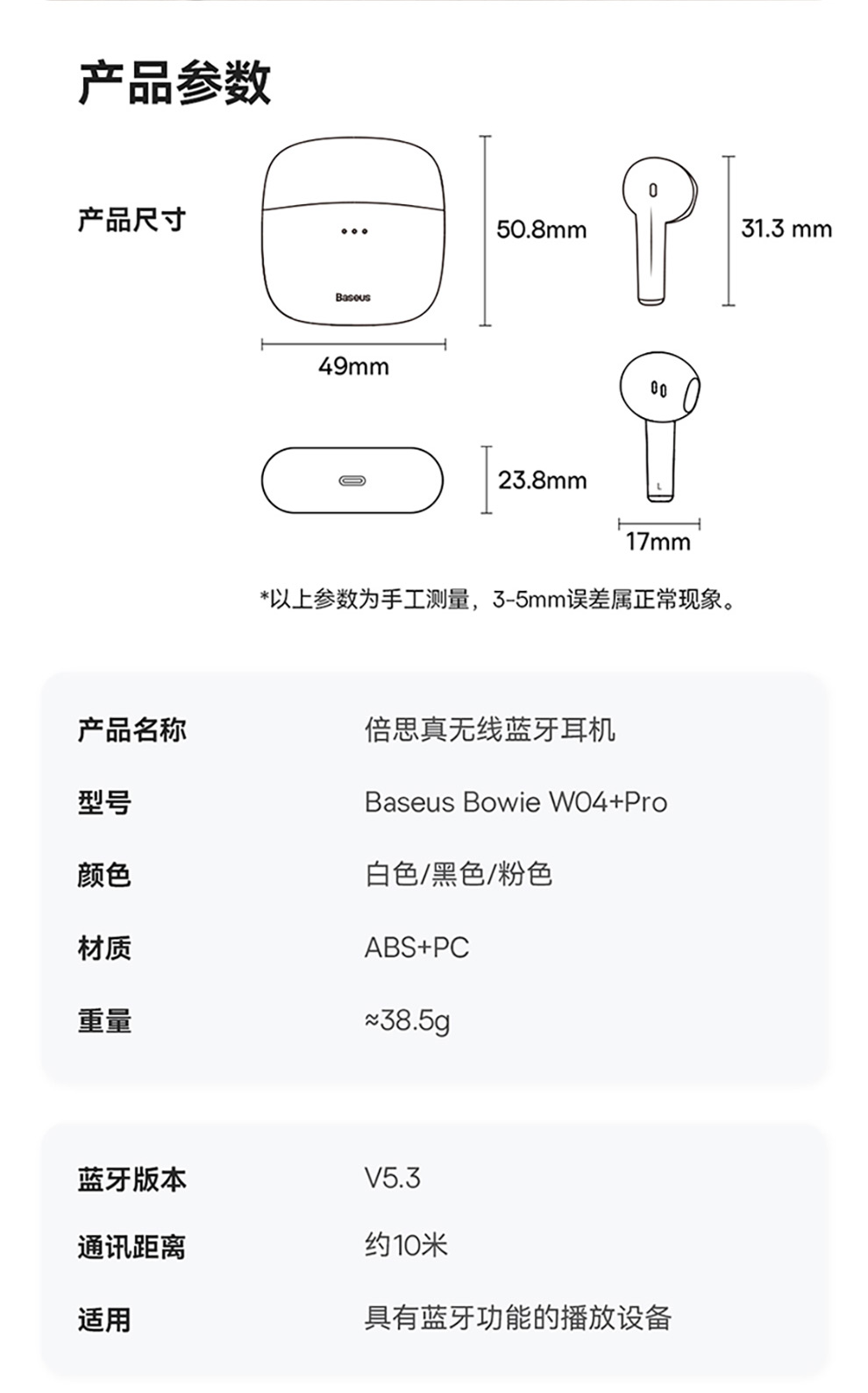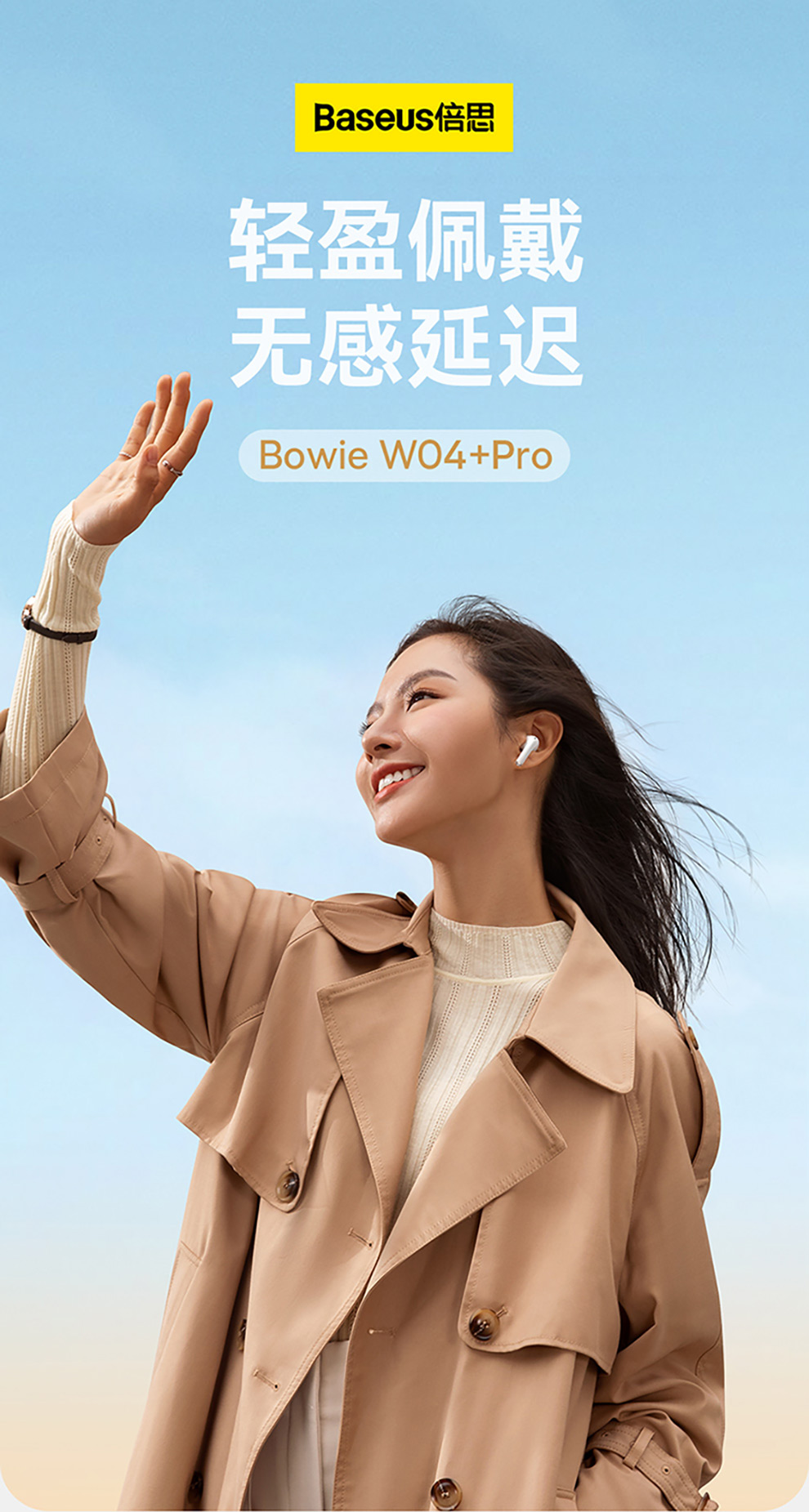 倍思 Bowie系列 W04+Pro TWS真无线蓝牙耳机