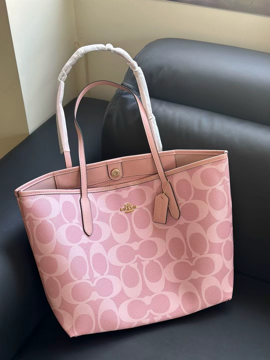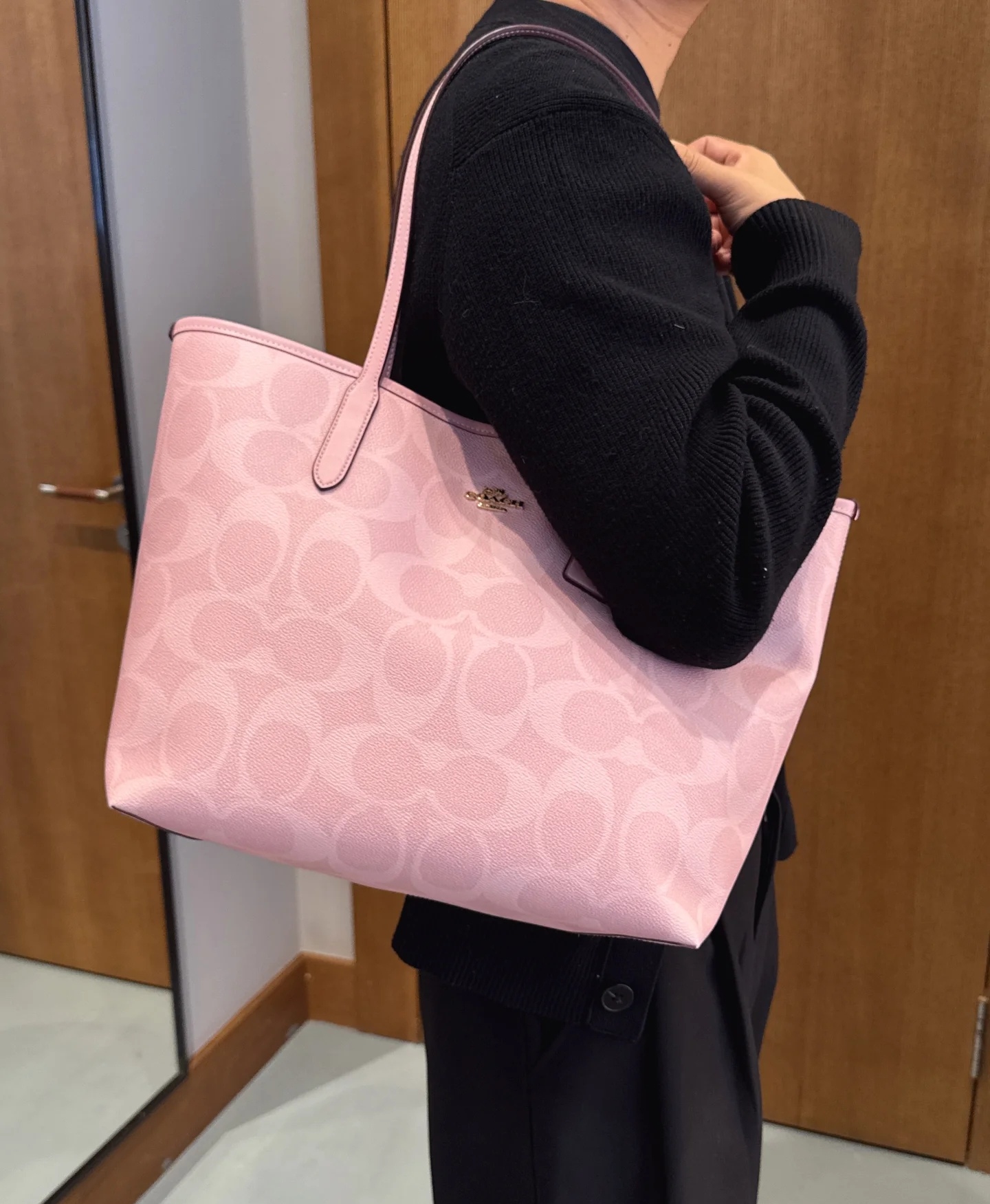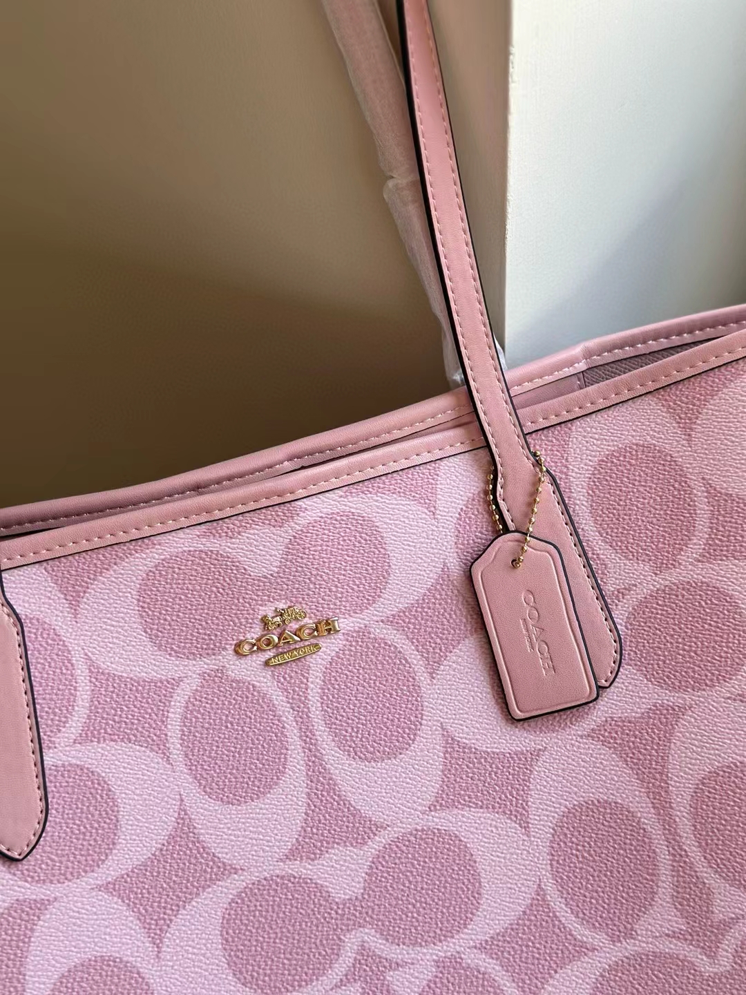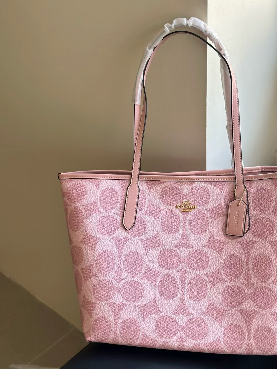 代工厂高品质寇驰city33樱花粉新色妈咪托特包