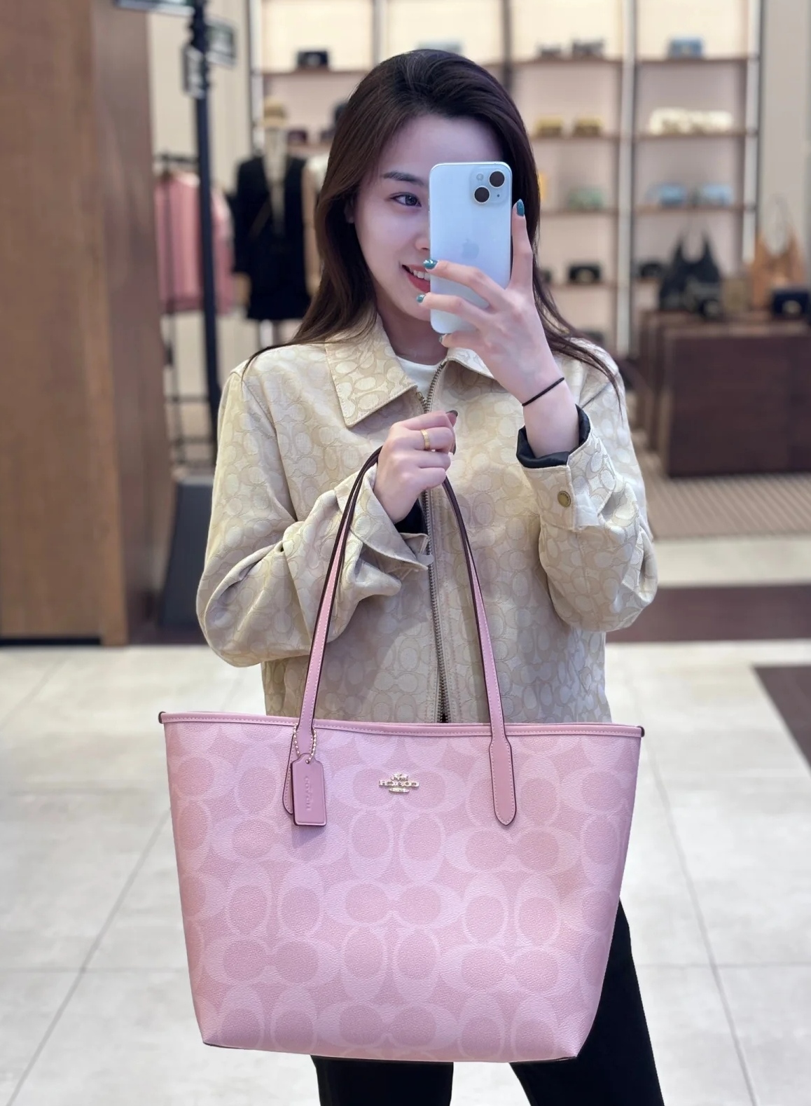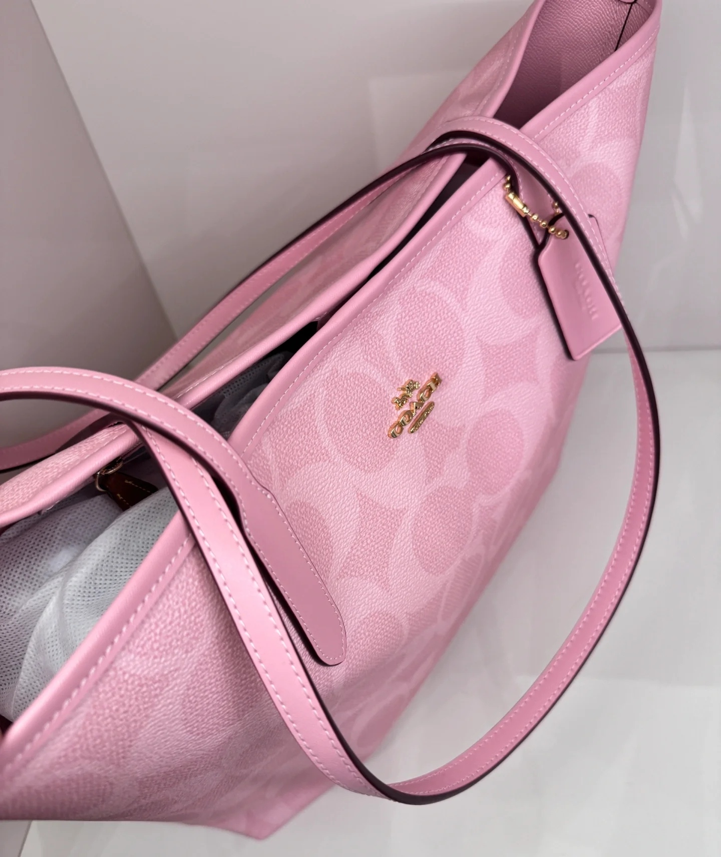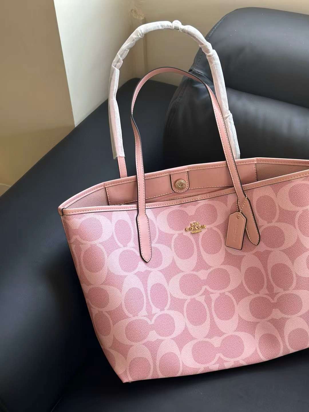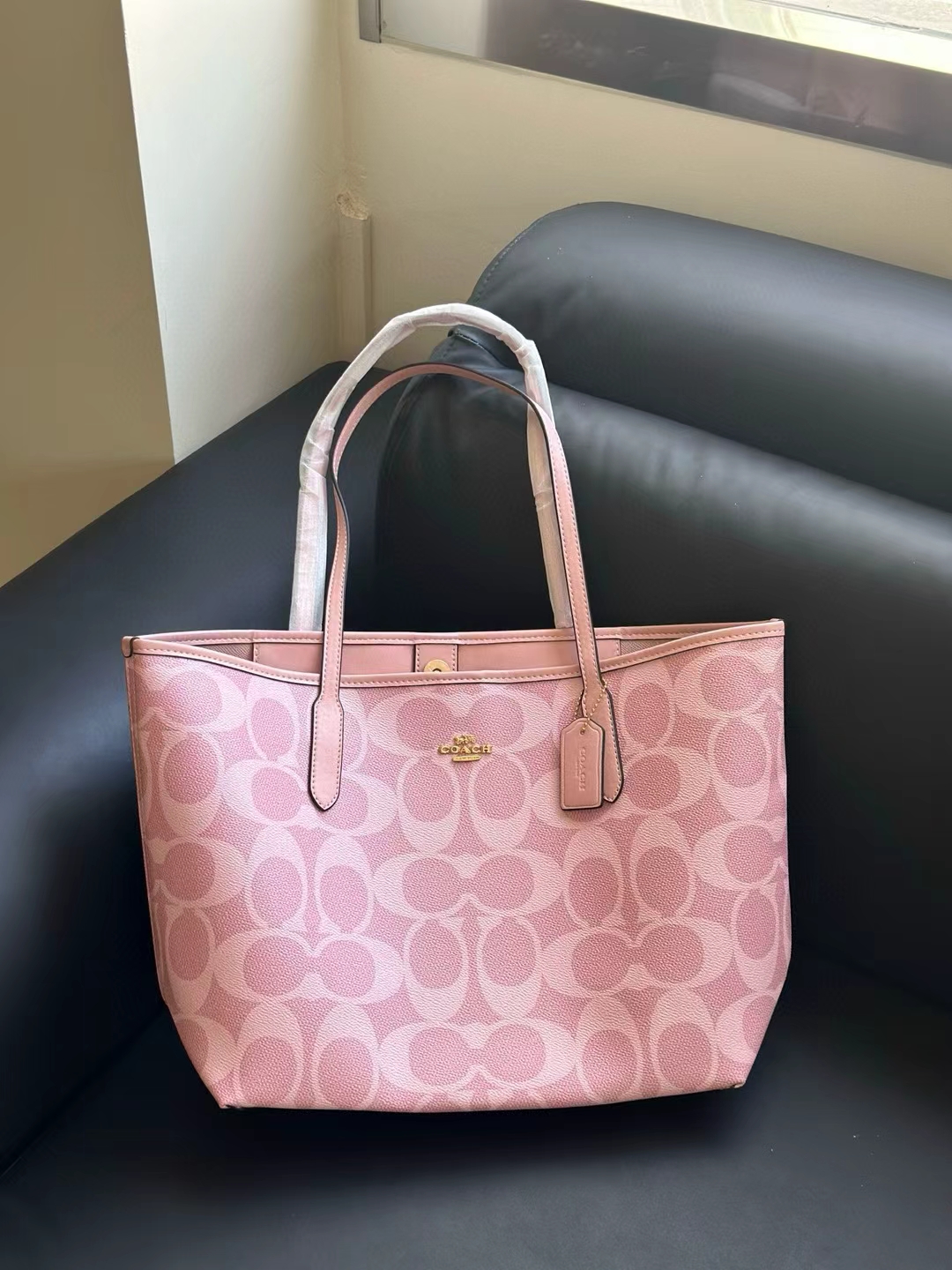 代工厂高品质寇驰city33樱花粉新色妈咪托特包