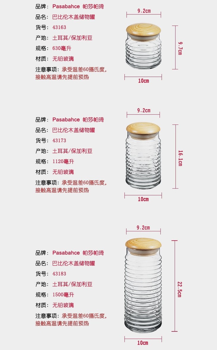 帕莎43173巴比伦木盖无铅玻璃储物罐-中号
