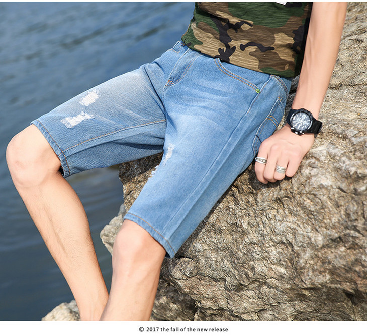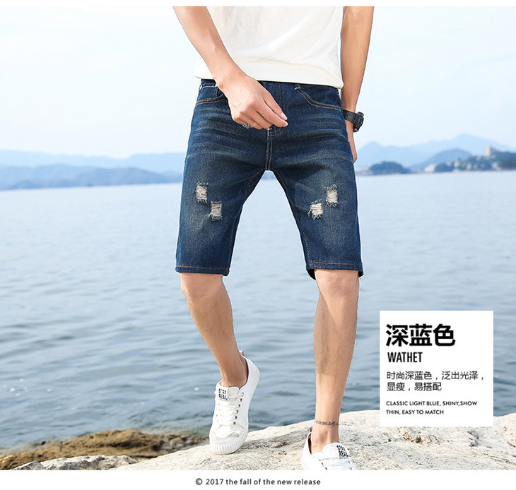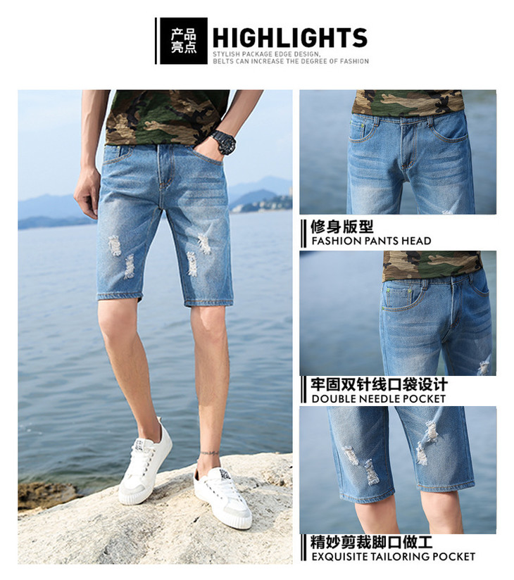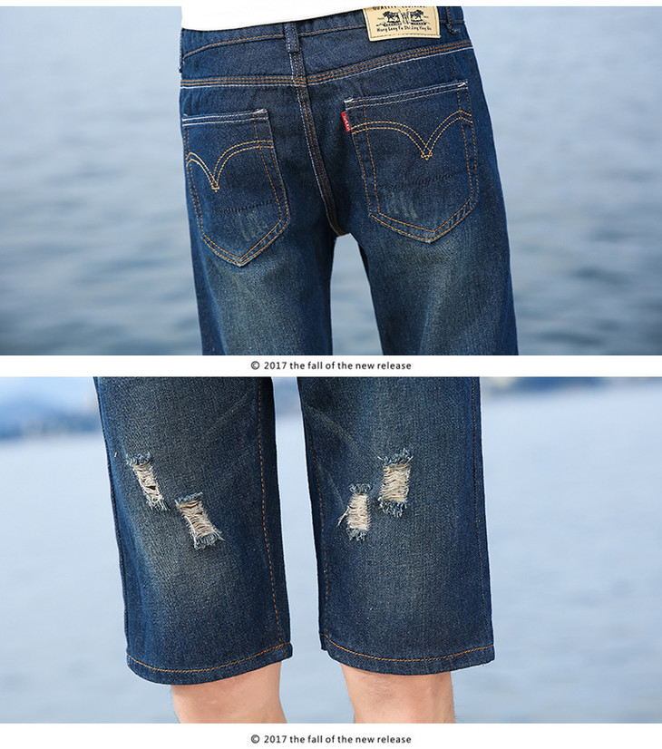 【男士牛仔裤】.夏天直筒宽松大码牛仔短裤男夏季超薄款男士五分裤百搭潮流中裤男