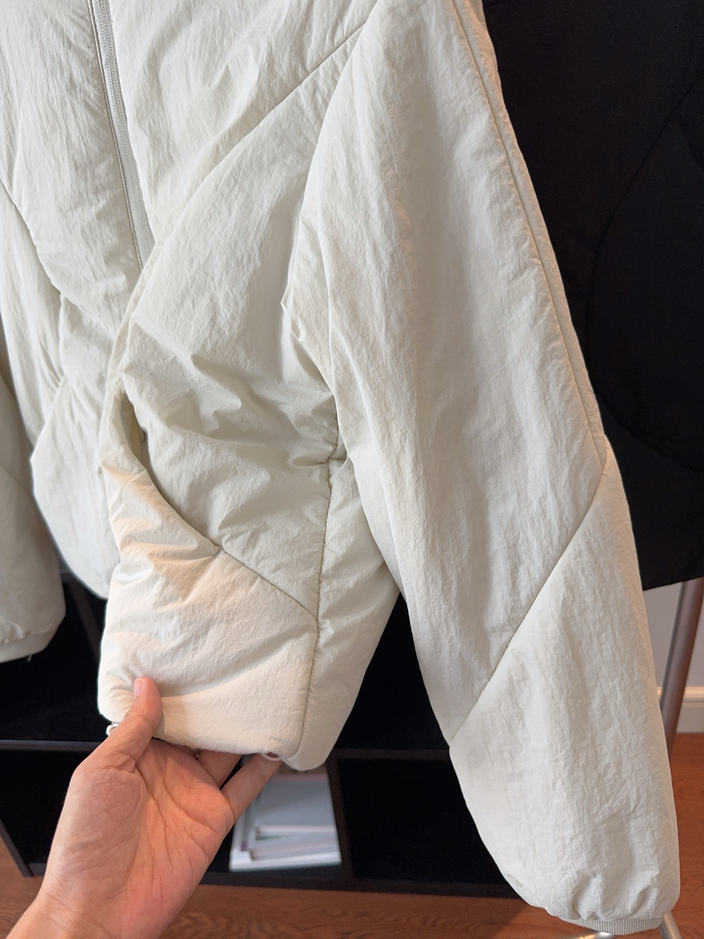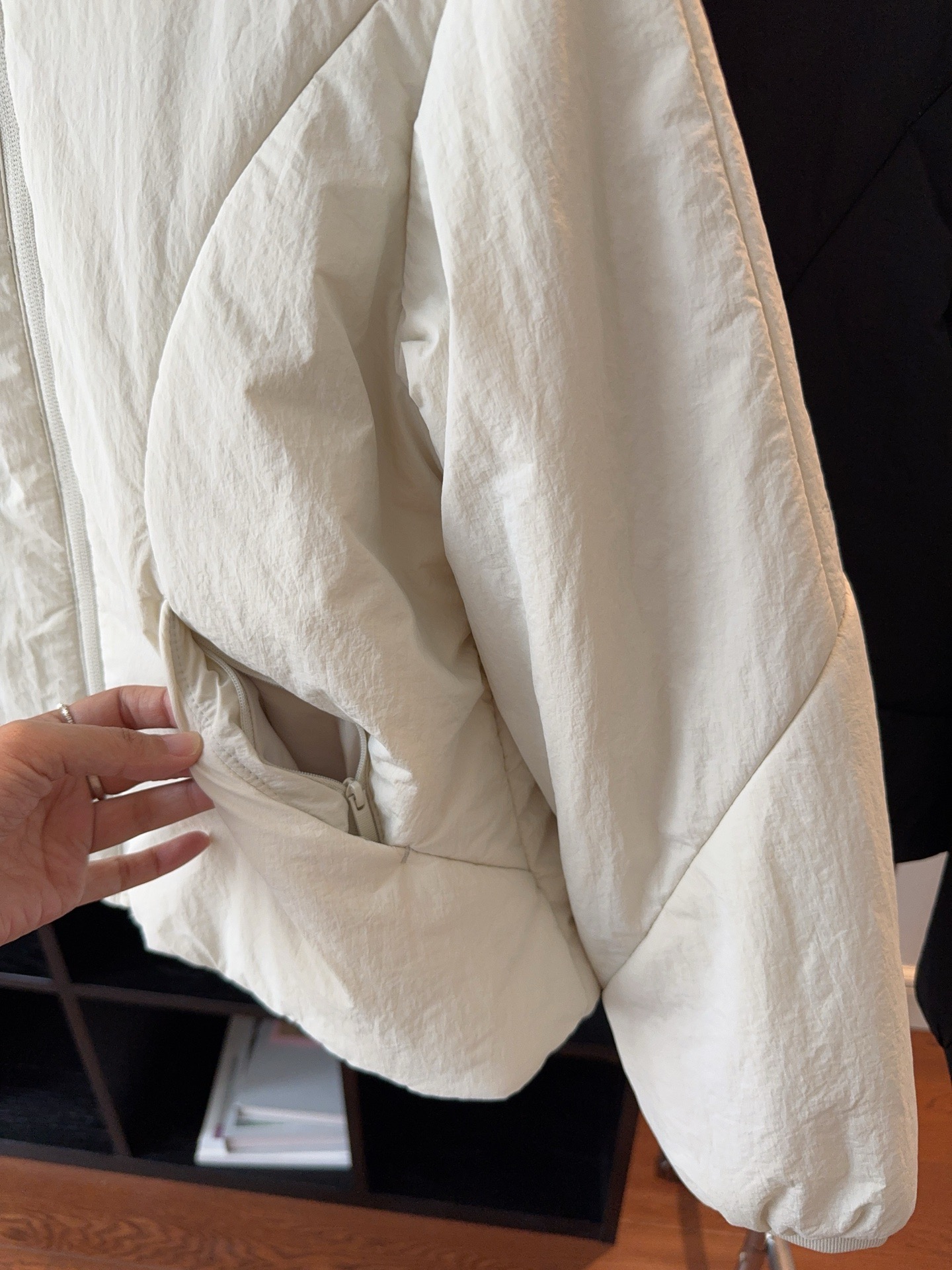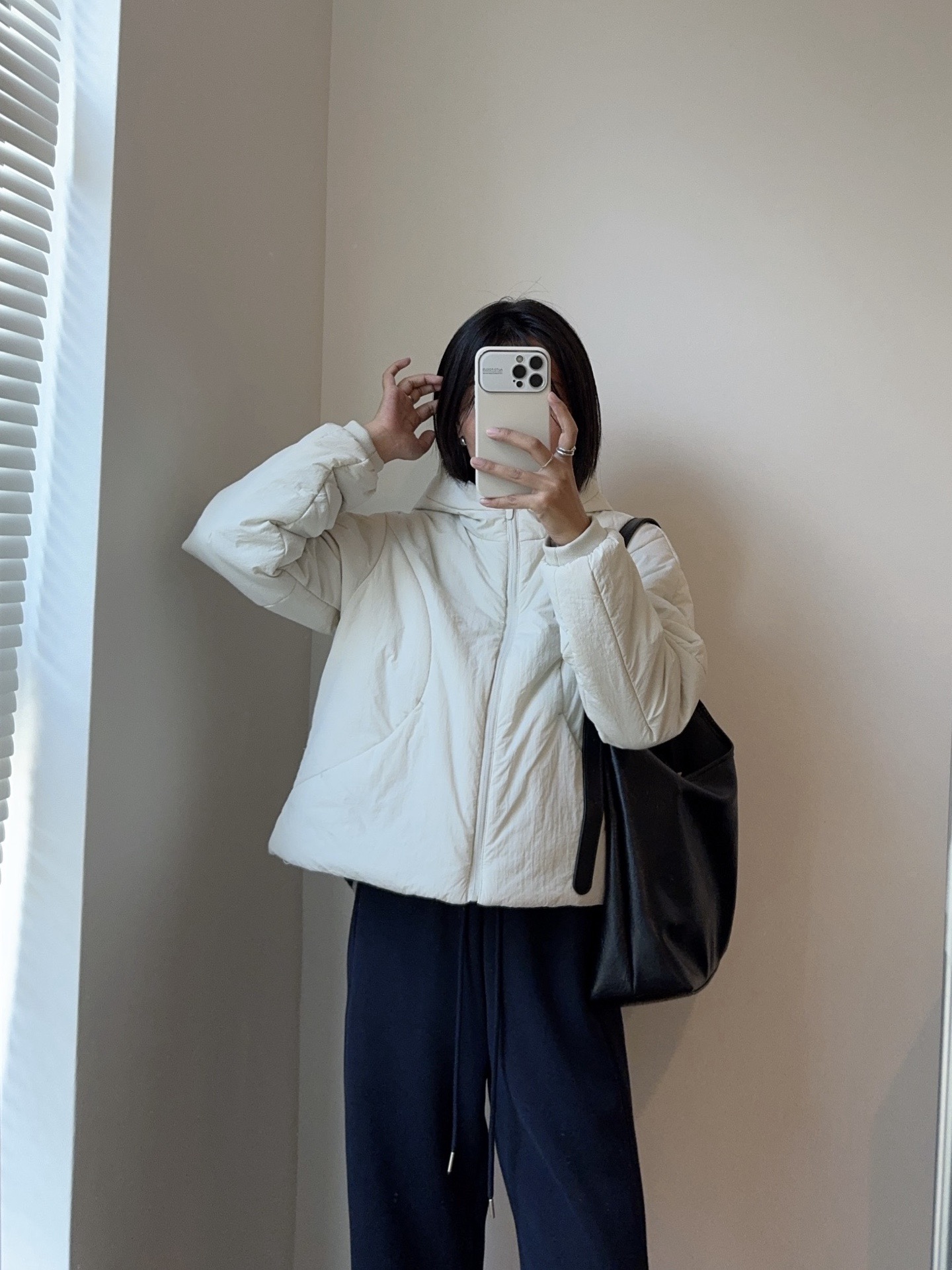 收口袖设计防止冷风侵袭,宽松版型剪裁,不挑身材