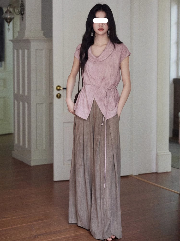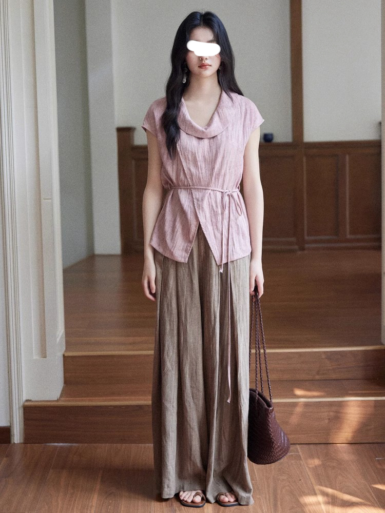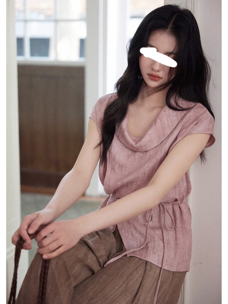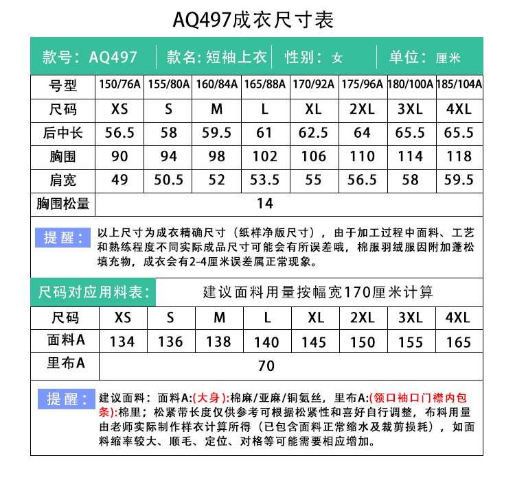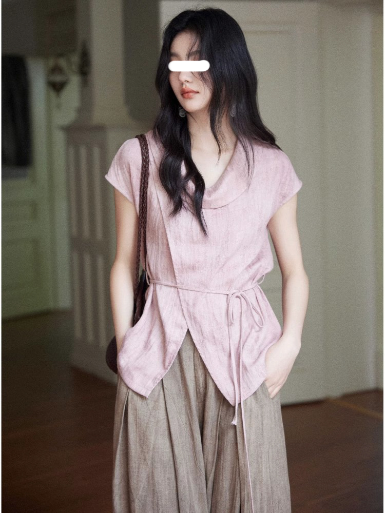 裁缝学苑AQ497荡领棉麻不规则绑带短袖上衣纸样女装连肩小衫样板