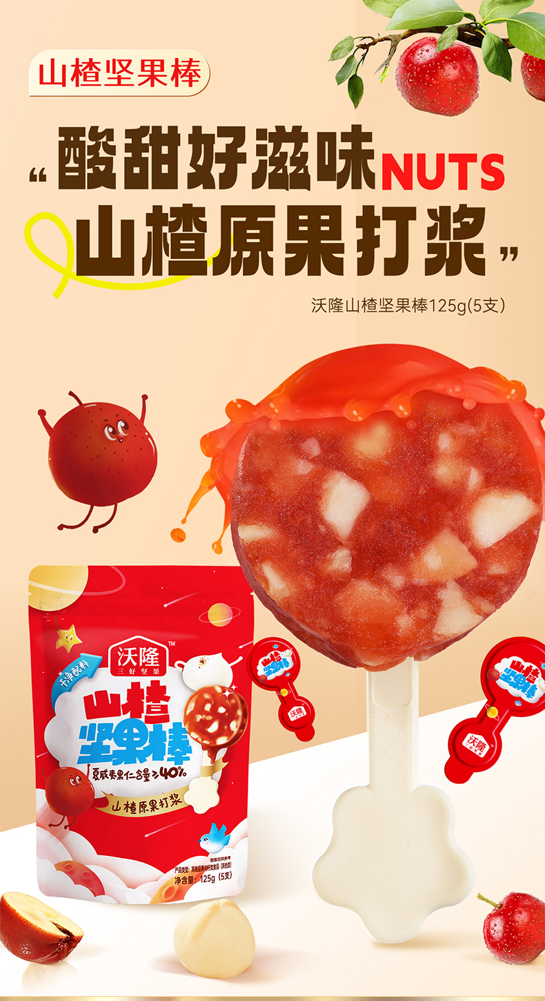 【沃隆】山楂坚果棒 125g/5支 酸甜开胃宝宝辅食健康早餐休闲零食