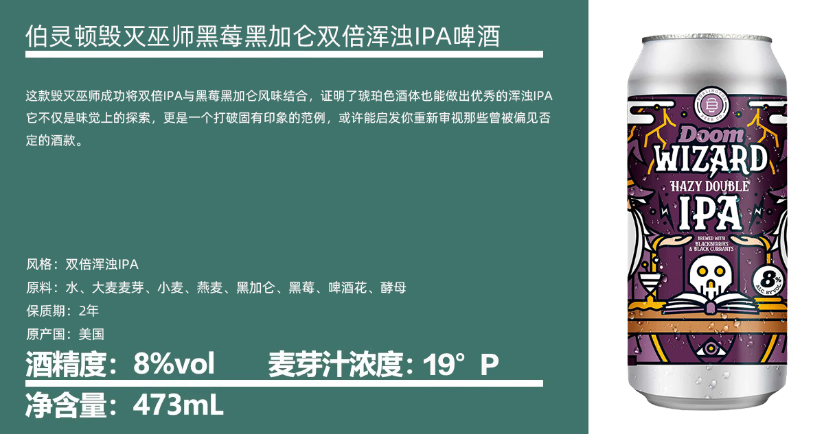 【冷库储存】美国伯灵顿毁灭巫师黑莓黑加仑双倍浑浊IPA 8vol
