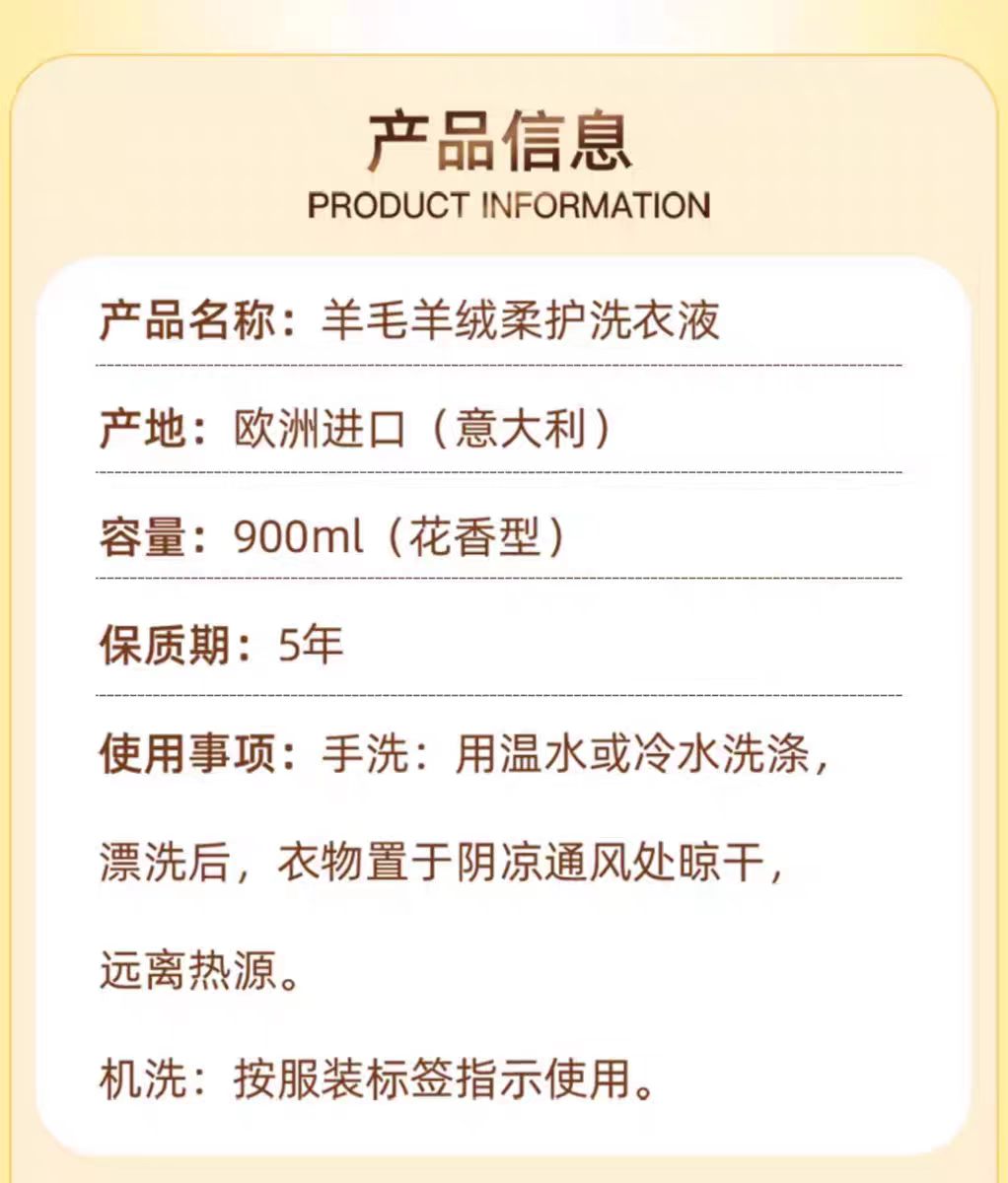 4楼Eubelle欧蓓 意大利大公鸡羊毛羊绒洗衣液900ml 细致衣物清洗剂 吊牌价:45元 活动价:39元