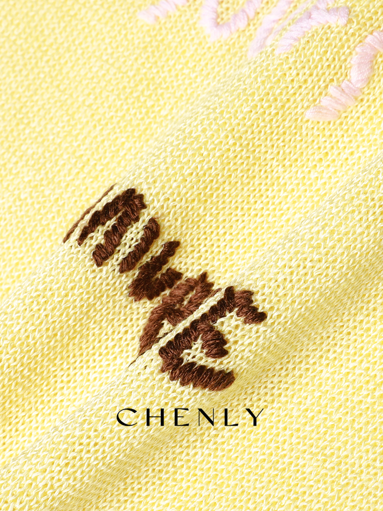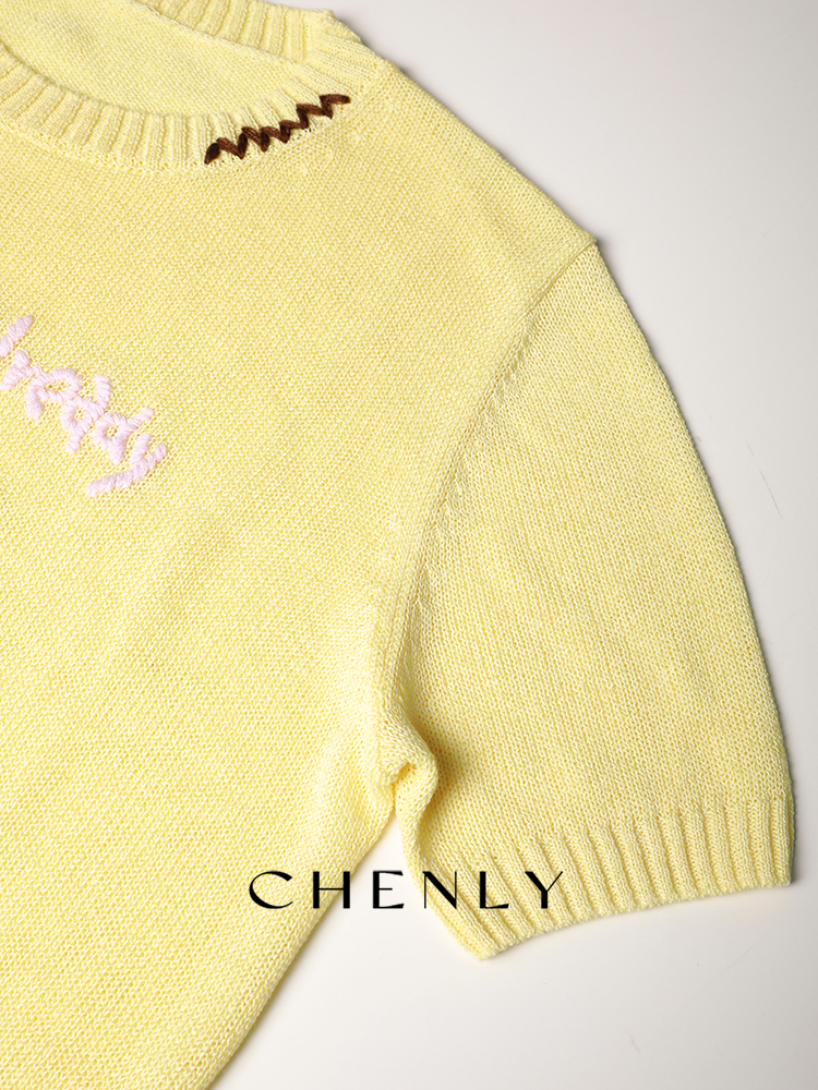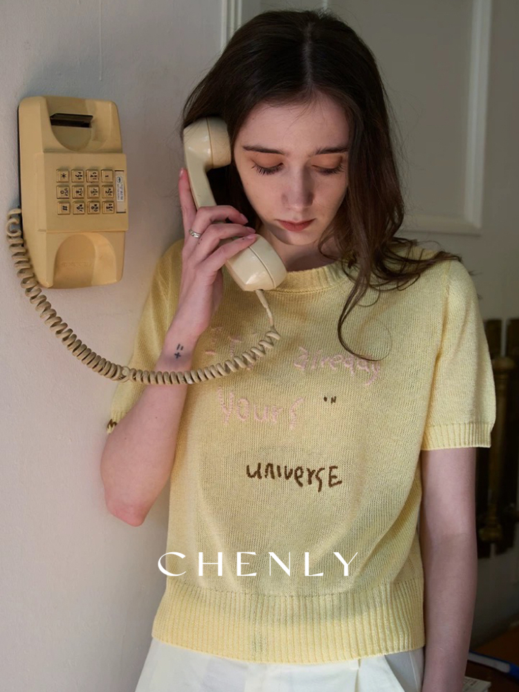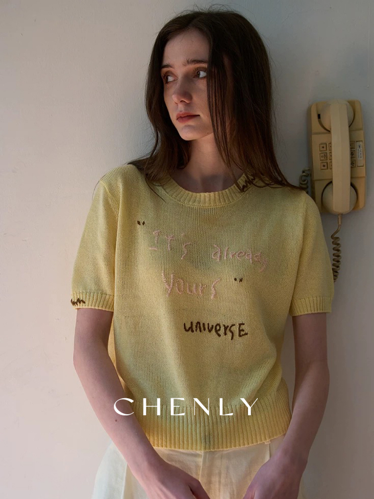 尘衣|25春夏和纸纱混纺字母刺绣短袖