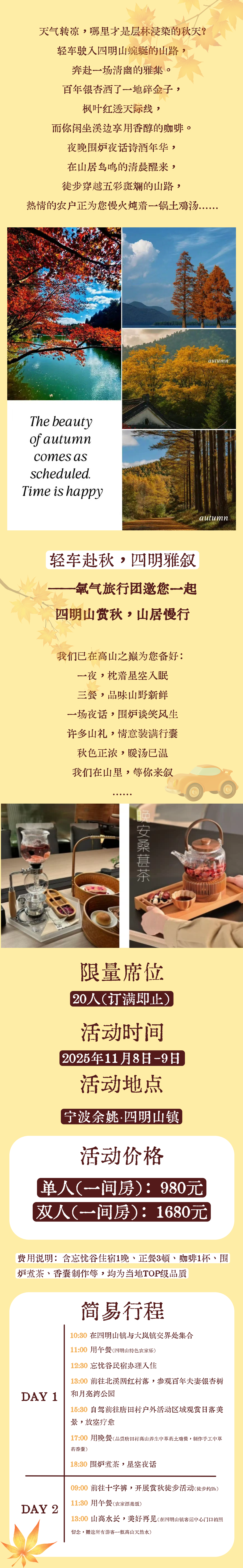 “轻车赴秋 四明山叙”——2天1晚赏秋自驾雅集
