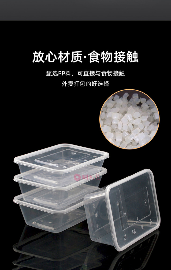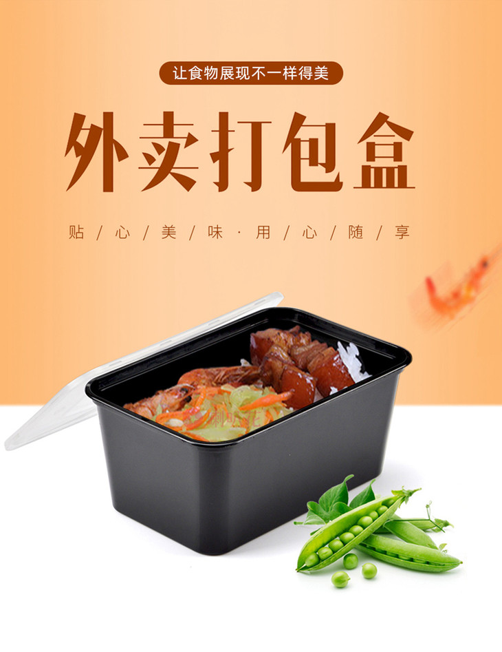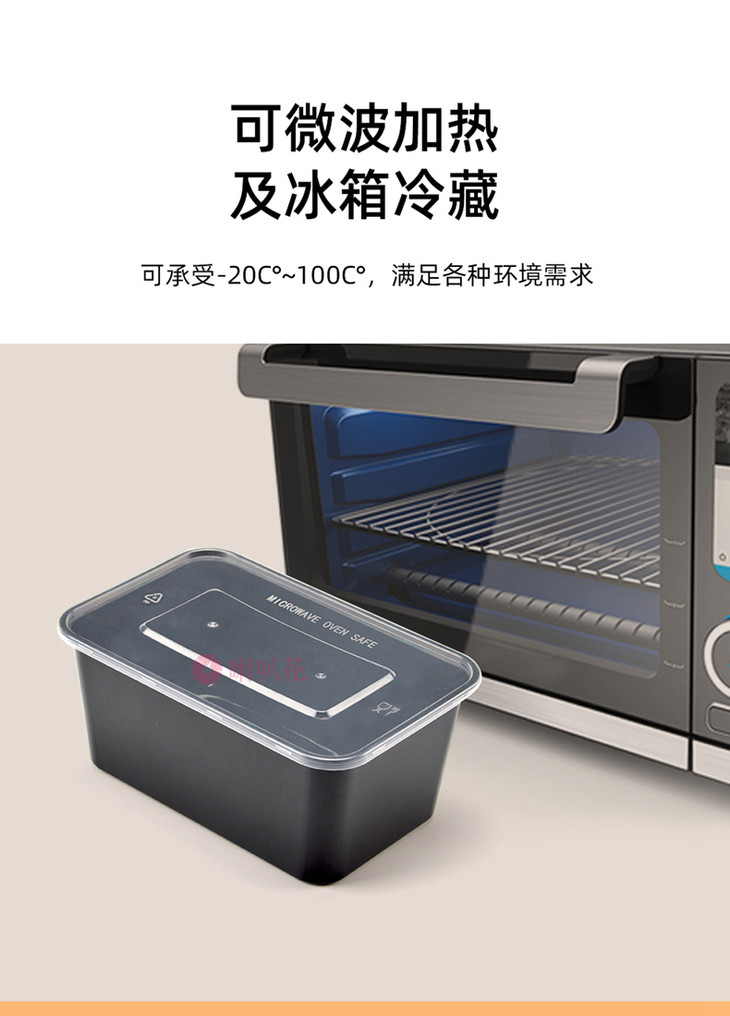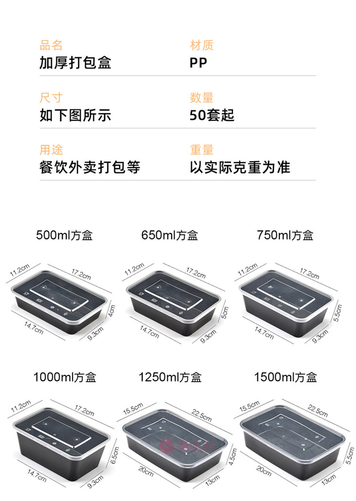 喇叭花打包盒一次性圆形塑料餐盒方盒外卖碗黑色饭盒餐盒汤碗带盖50套