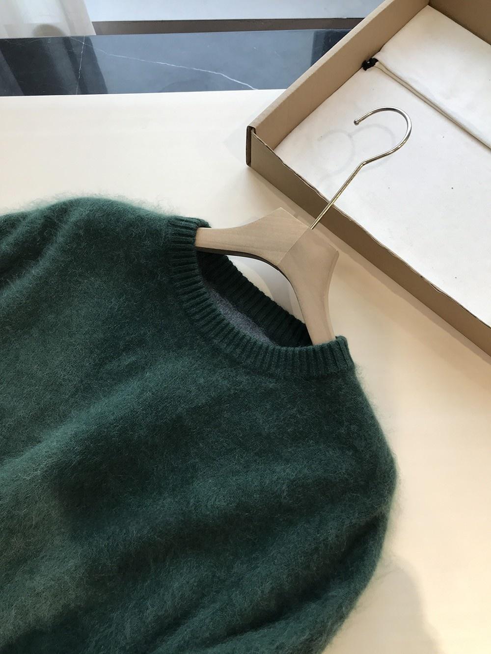 圆领领口经特殊锁边处理,既保留羊绒的柔滑,又避免卷边变形;