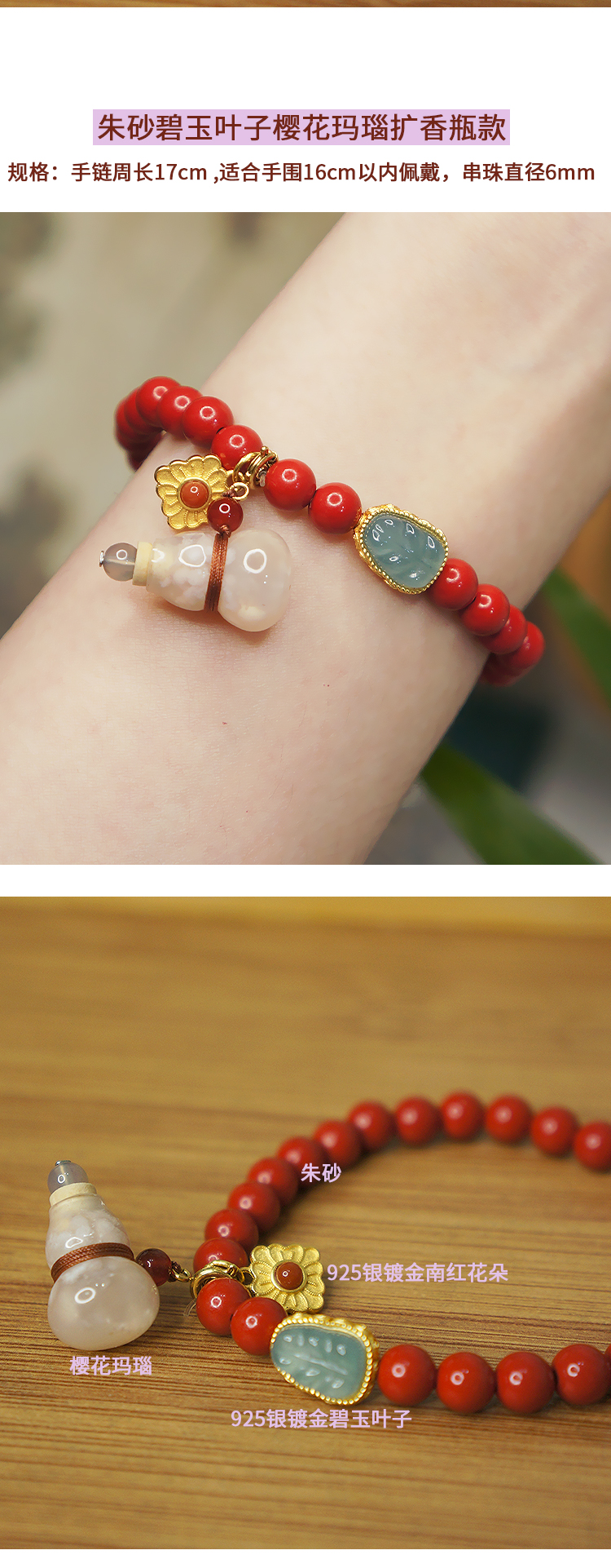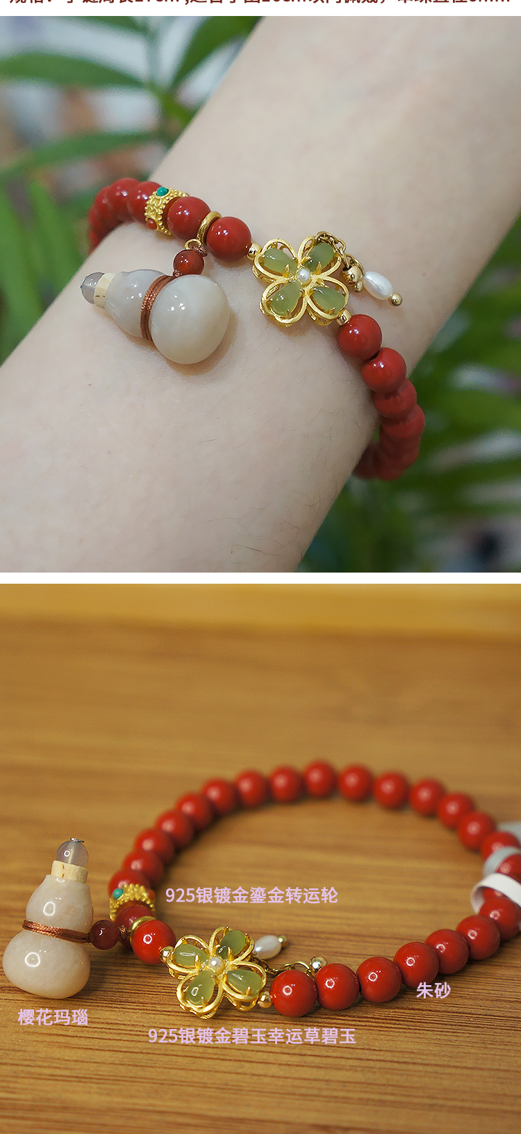 平衡小柅 朱砂红樱花玛瑙福禄扩香瓶款单圈手串 新年 红火设计