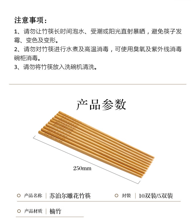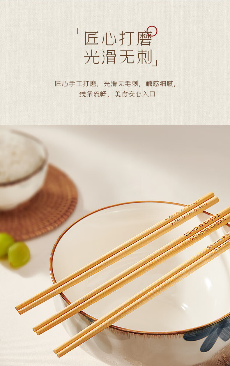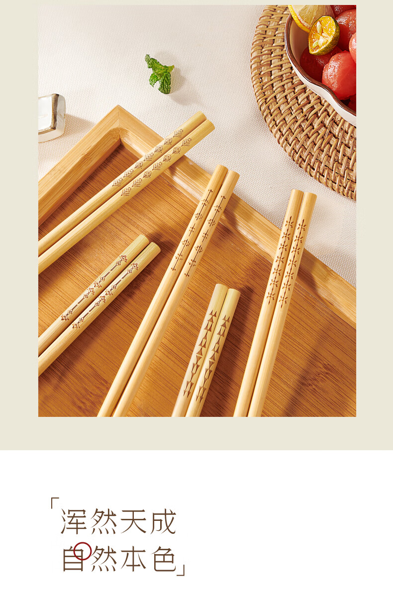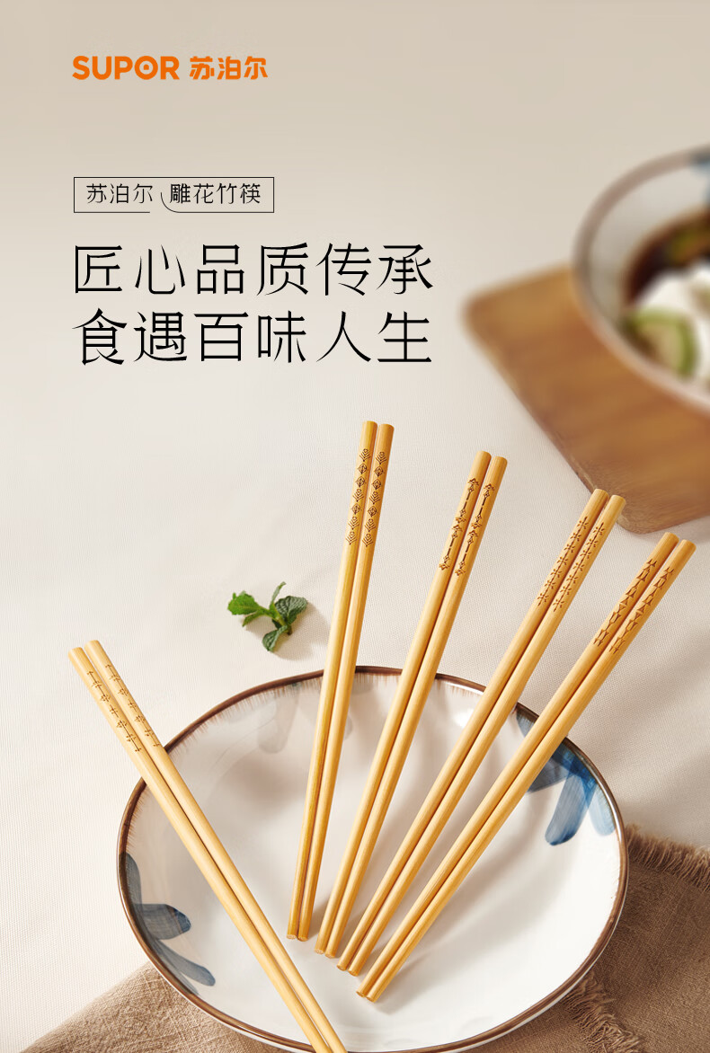 苏泊尔(SUPOR) 雕花竹筷10双装 天然竹筷子无漆无蜡高山楠竹筷TK23003Q