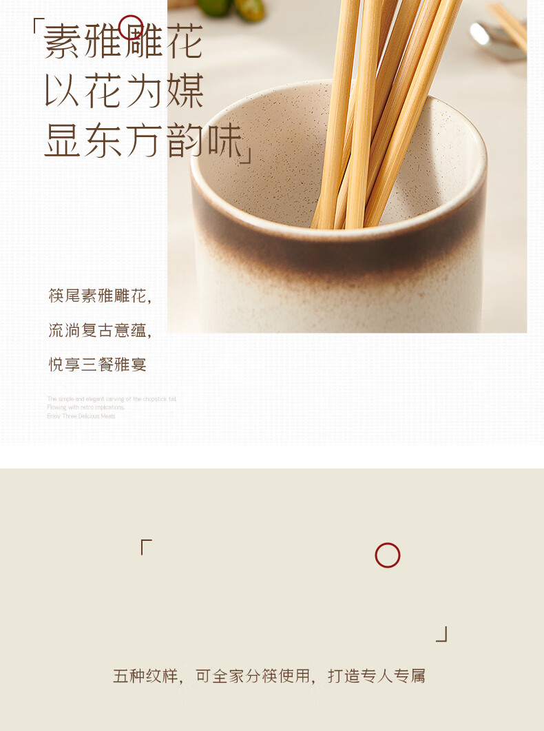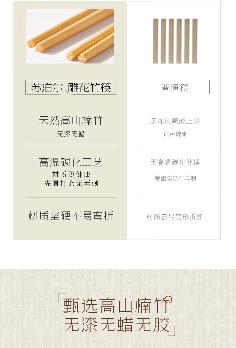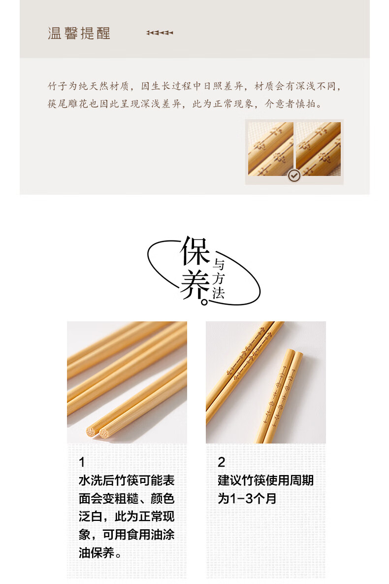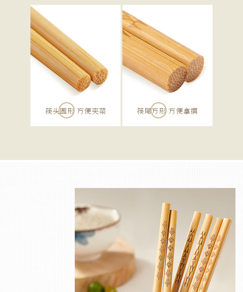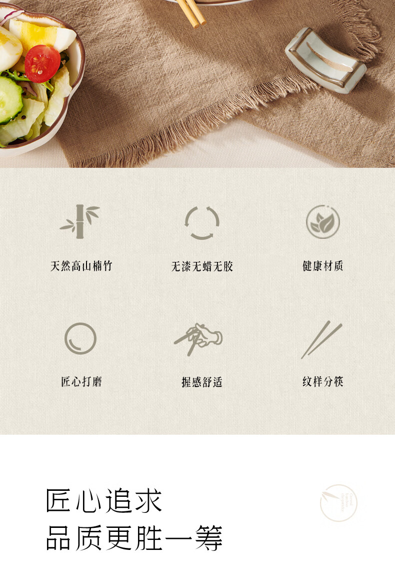 苏泊尔(SUPOR) 雕花竹筷10双装 天然竹筷子无漆无蜡高山楠竹筷TK23003Q