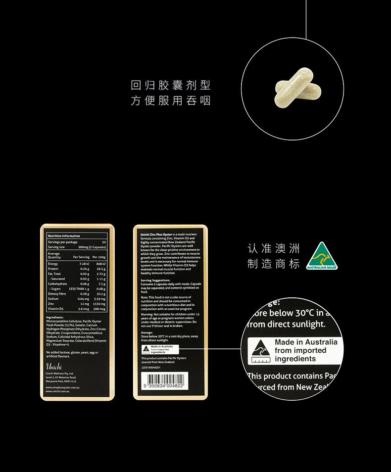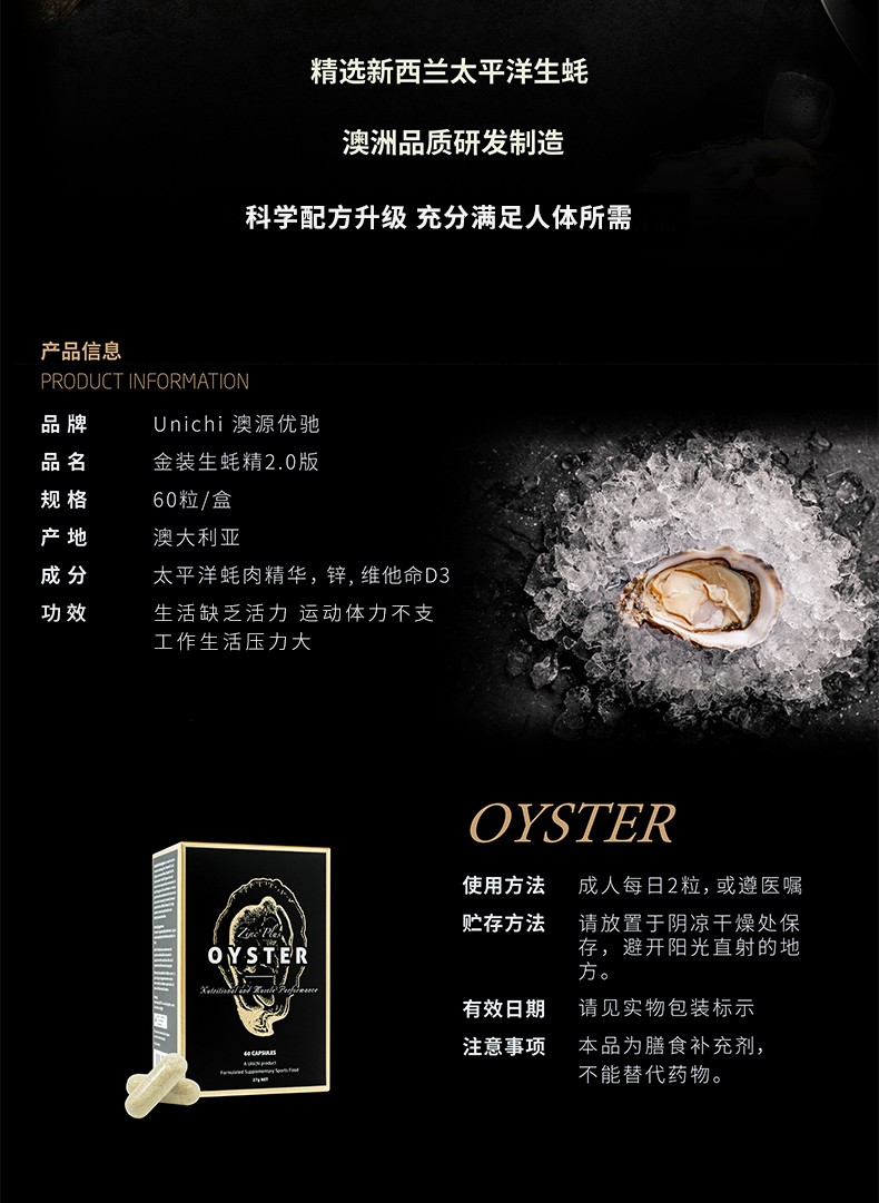 澳洲Unichi 生蚝精60粒(黑色精装版) 有效期26年9月