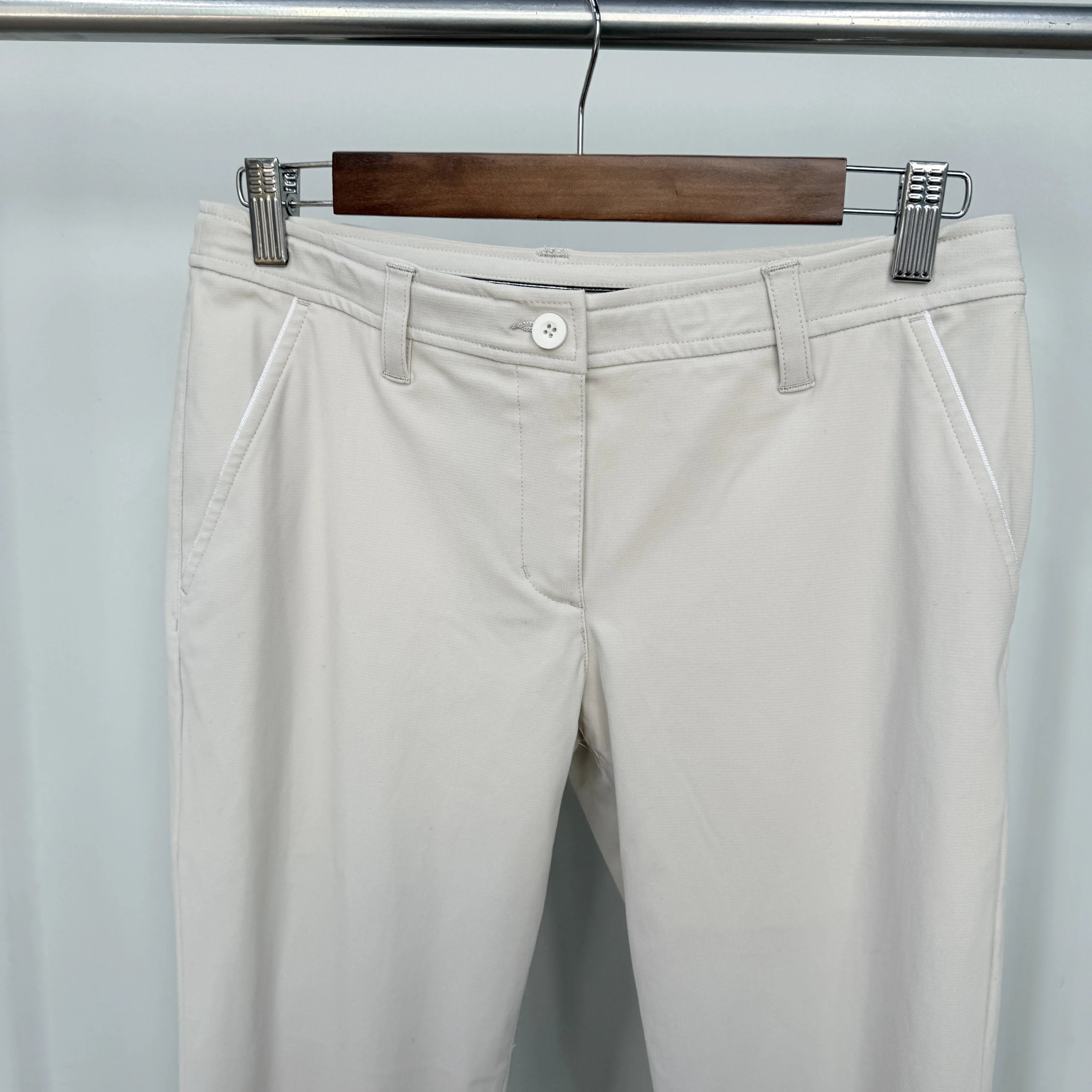 裤子经典无褶直筒版型,干净利落剪裁,修饰腿型,有质感挺括,耐穿不易皱。口袋撞色设计,后腰部撞色绸带装饰,后袋品牌字母铆钉点缀 具体尺寸 XS:腰围35.5cm/臀围46cm/裤长85cm S:腰围37cm/臀围48.5cm/裤长88cm M:腰围39cm/臀围53cm/裤长84cm L:腰围40cm/臀围54cm/裤长95cm (Tip:尺寸均为手工测量如有1-3cm误差属正常情况) 外单保真,部分三标不齐(领标,洗标,吊牌),介意者慎拍!