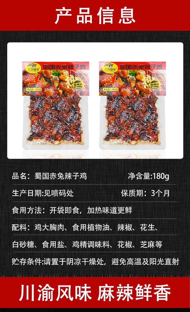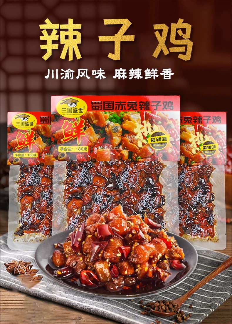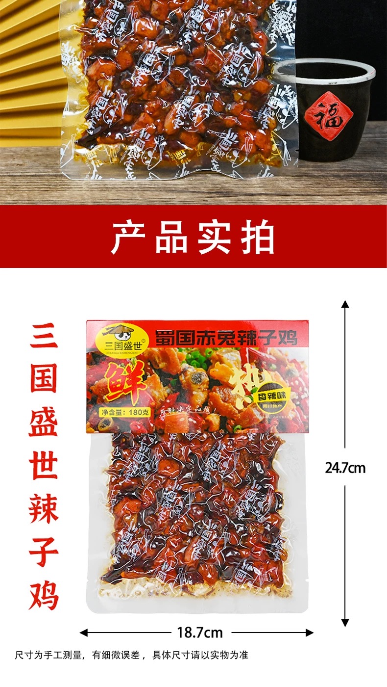 四川特产 三国盛世 辣子鸡 180g袋装 香辣味 鸡肉 办公休闲小零食
