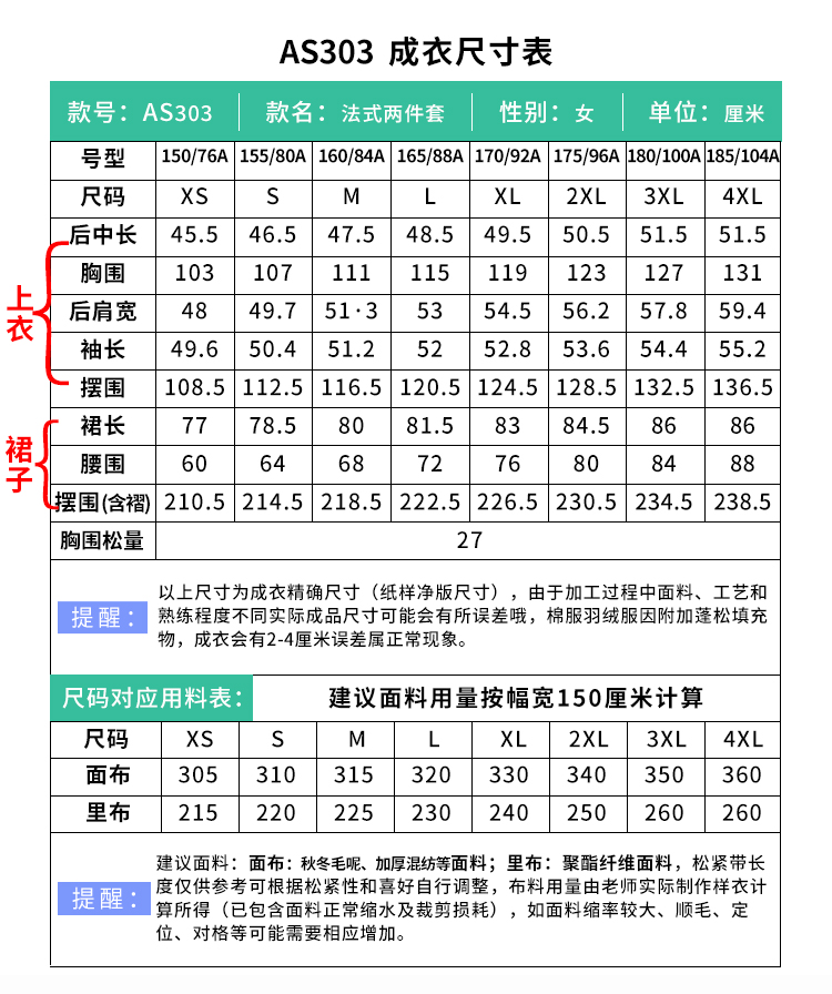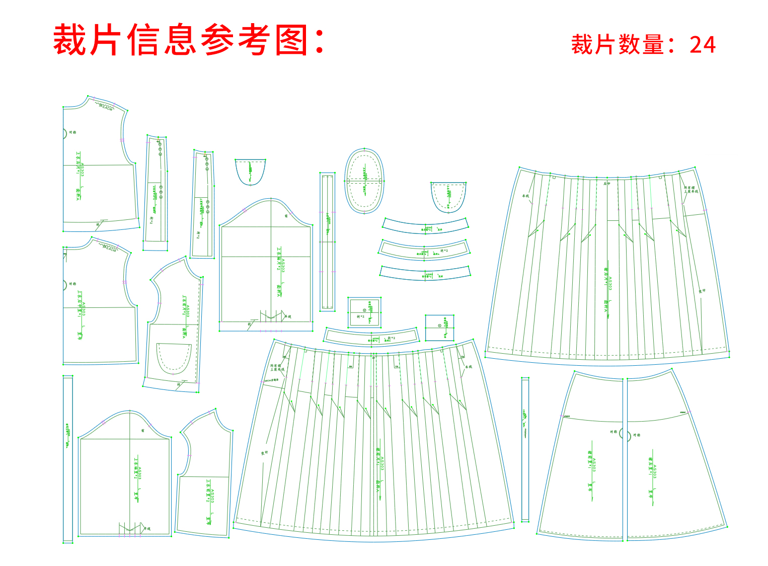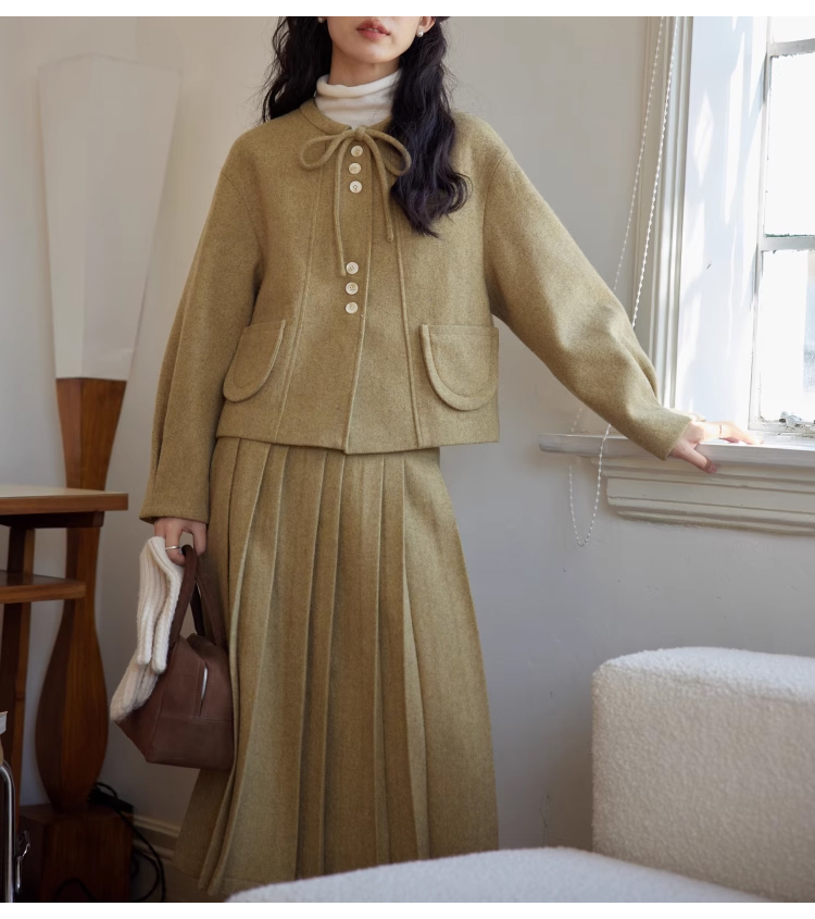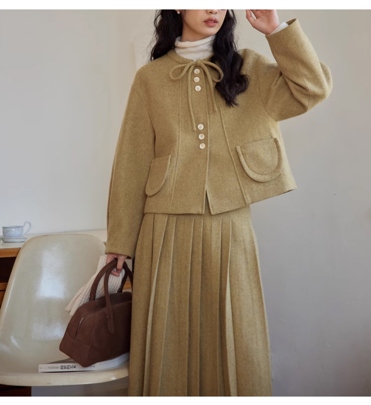 裁缝学苑AS303毛呢套装纸样女装新款法式圆领百褶半裙两件套样板