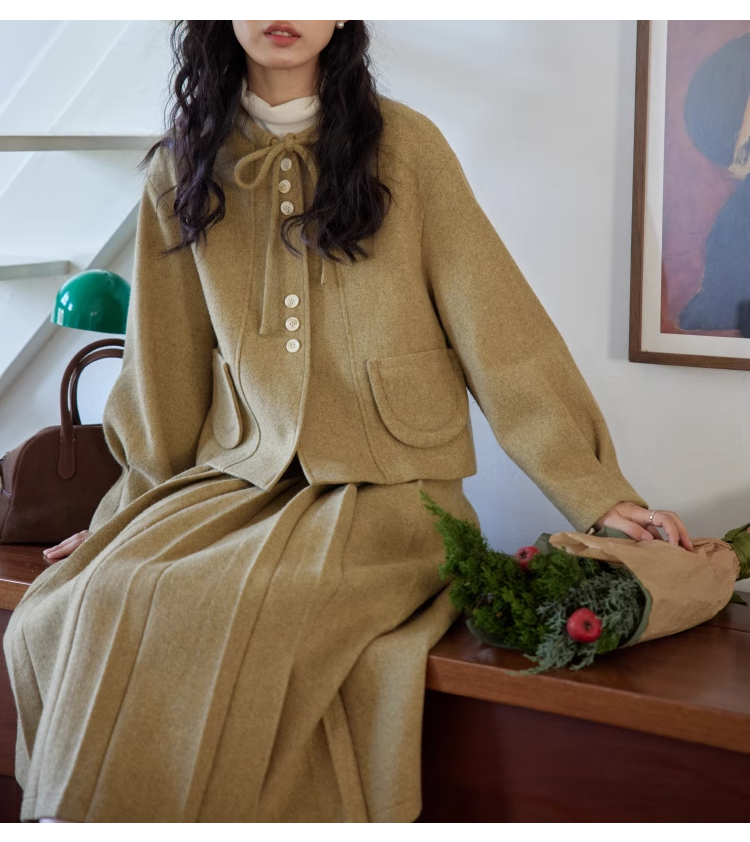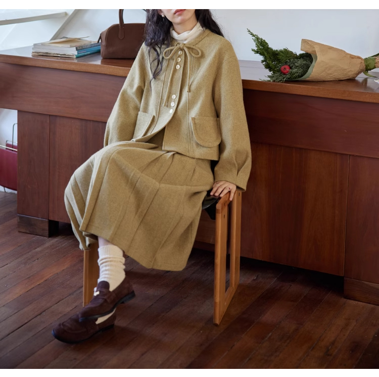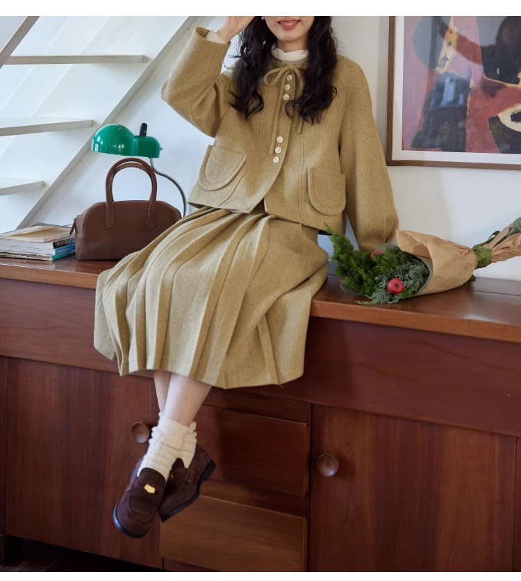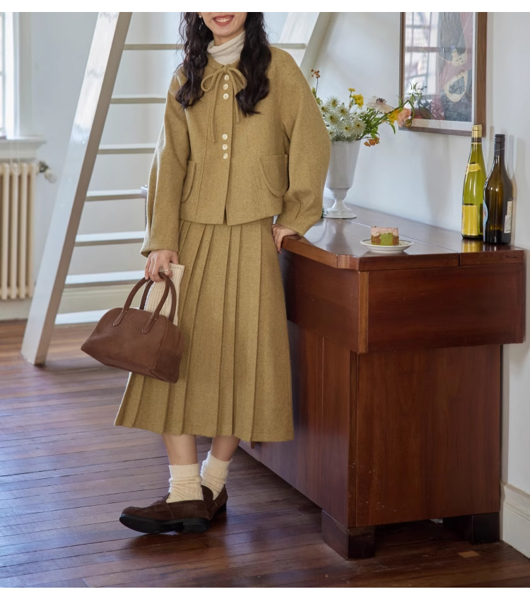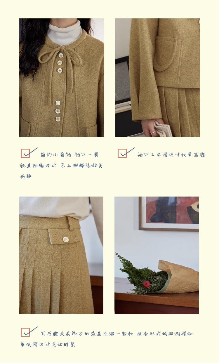 裁缝学苑AS303毛呢套装纸样女装新款法式圆领百褶半裙两件套样板