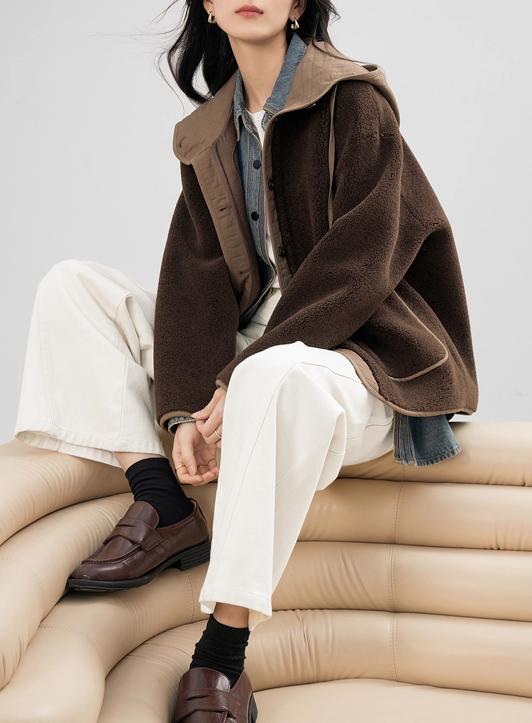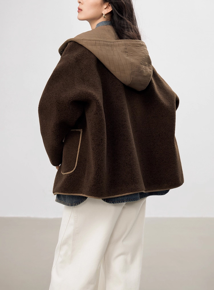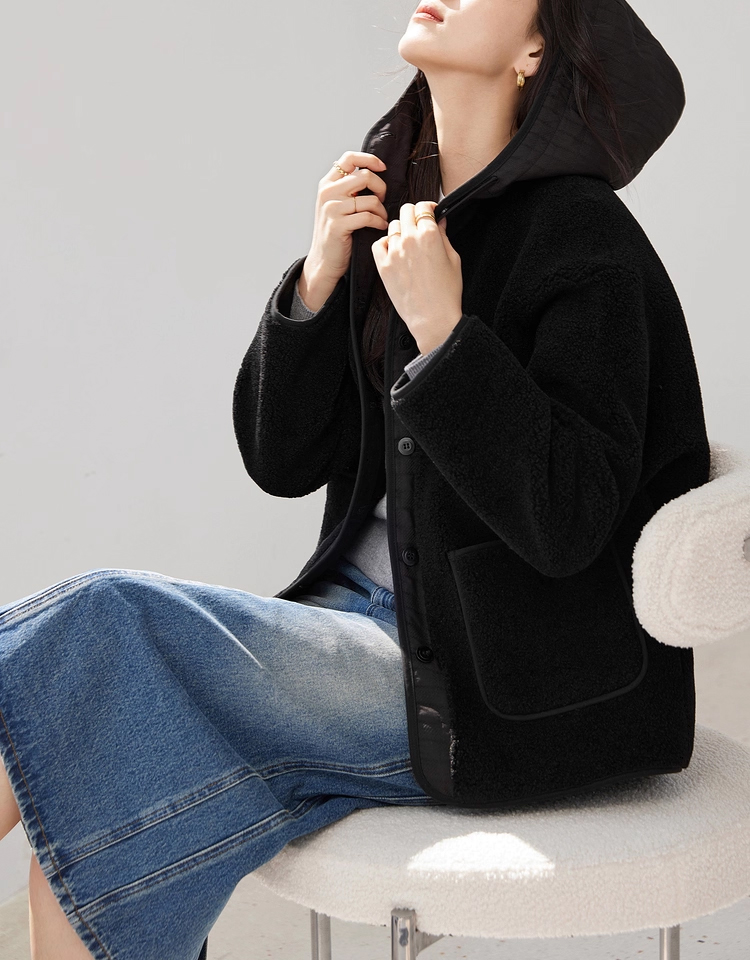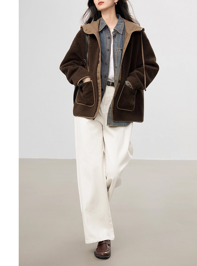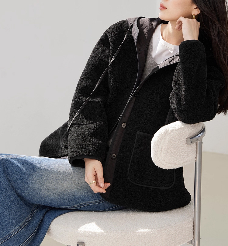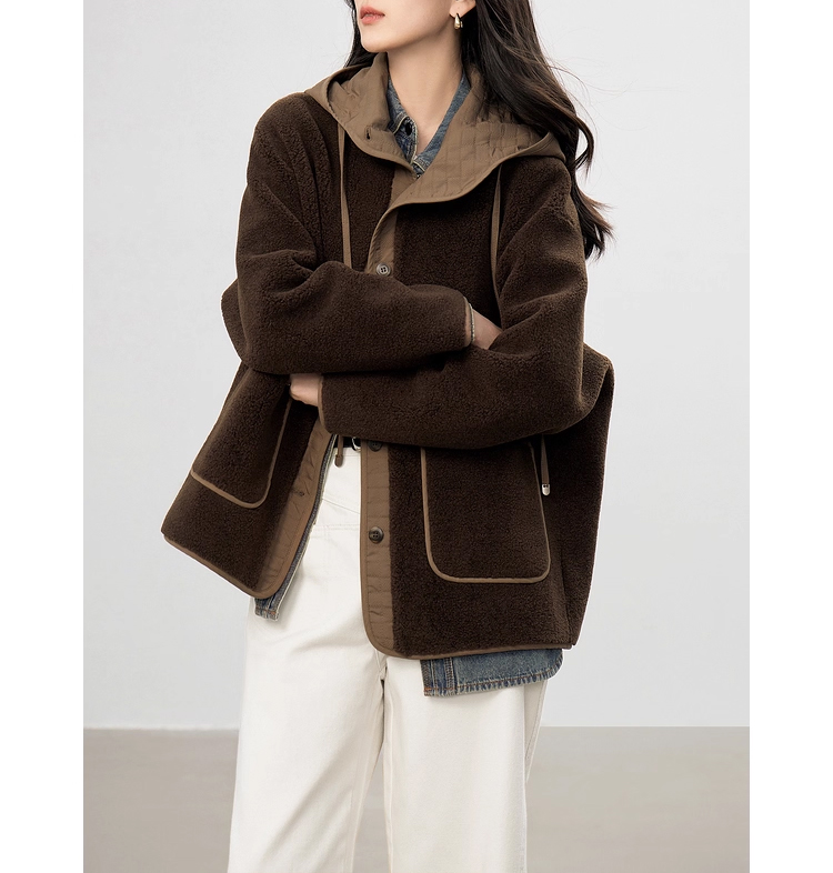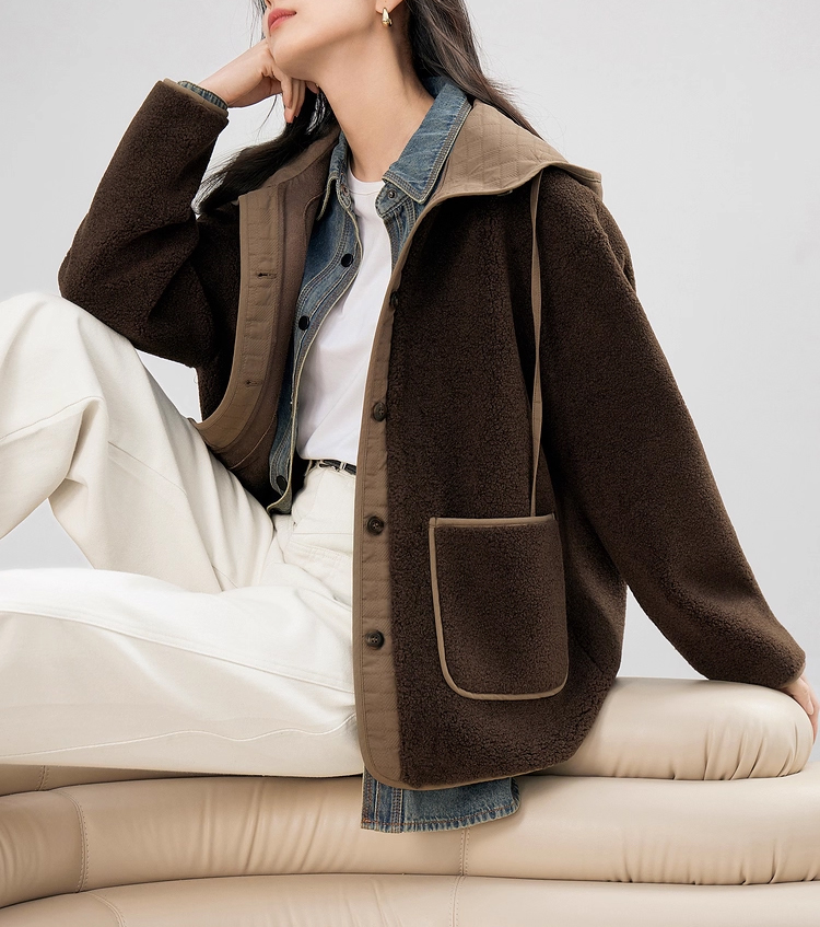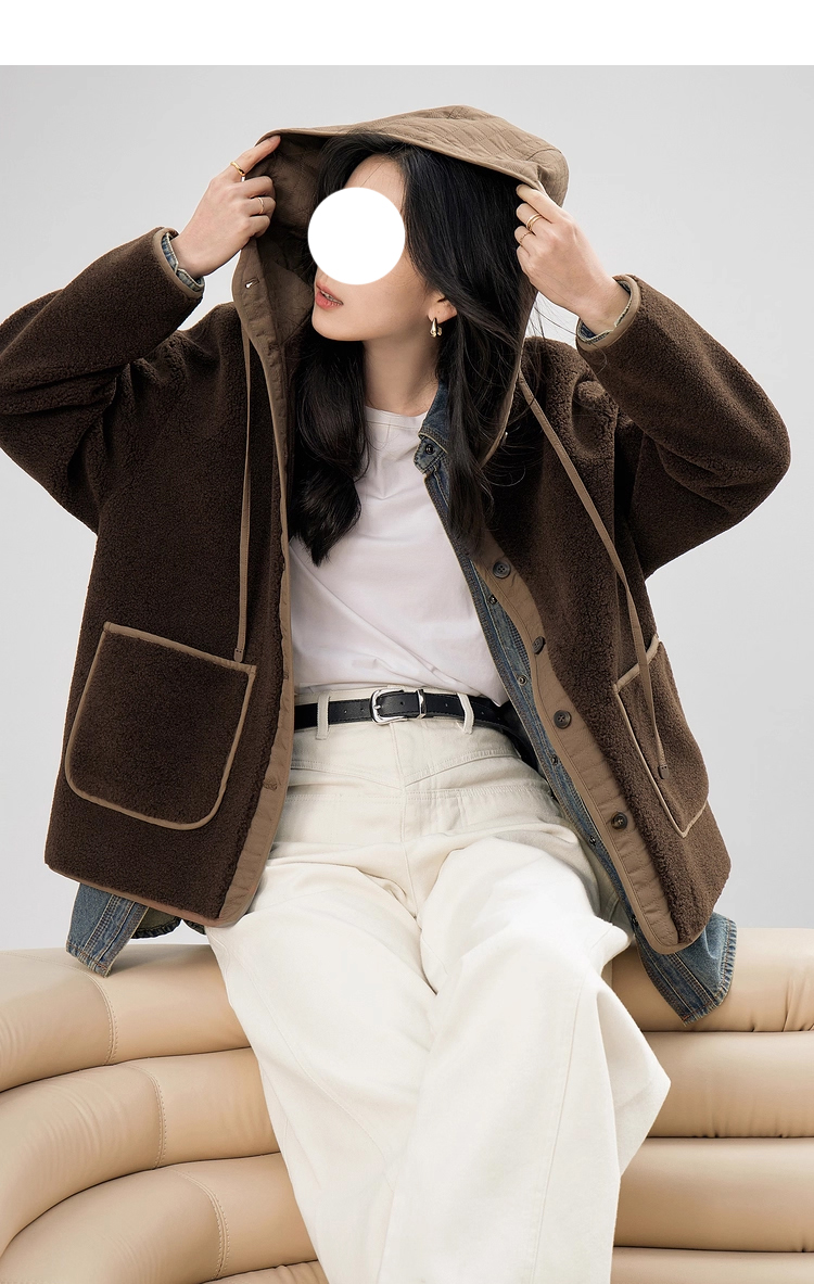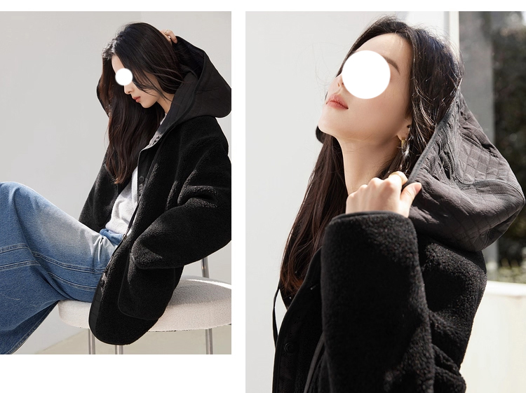 裁缝学苑AS611羊羔毛拼接短款外套纸样女装新款连帽宽松上衣样板