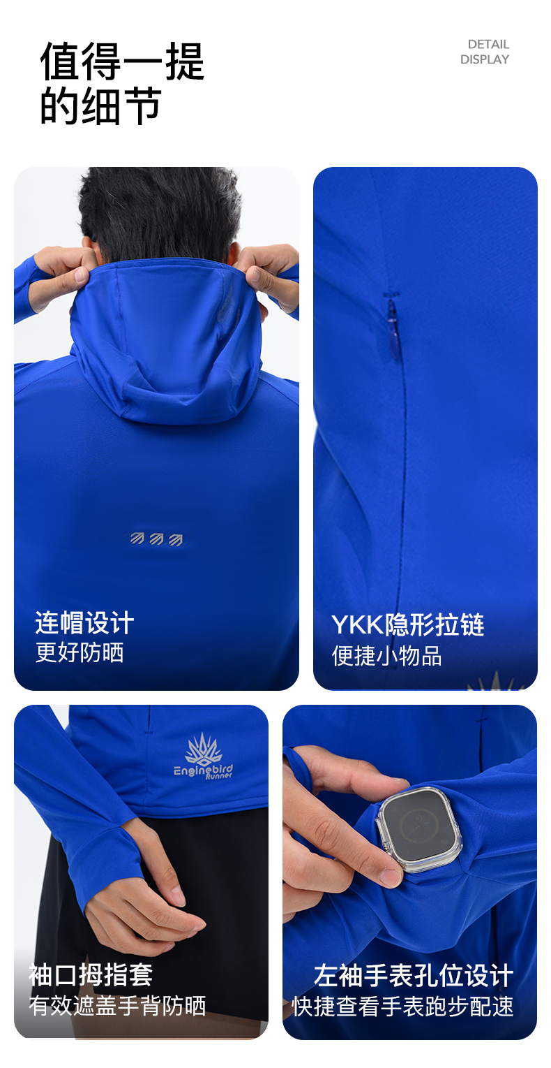 引擎鸟男女款百灵拉链开衫连帽防晒外套马拉松跑步训练长袖运动上衣
