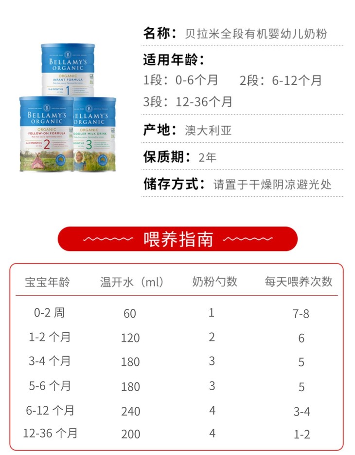 【包邮保税区直发】澳洲 贝拉米 有机奶粉系列 900g