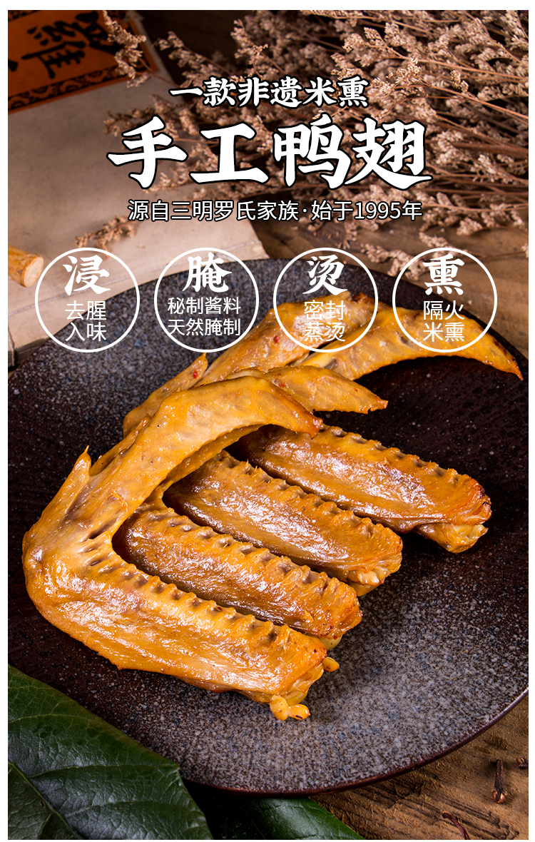 福建罗大胡子熏鸭翅现做现发特产小吃零食 只喂单身鸭翅