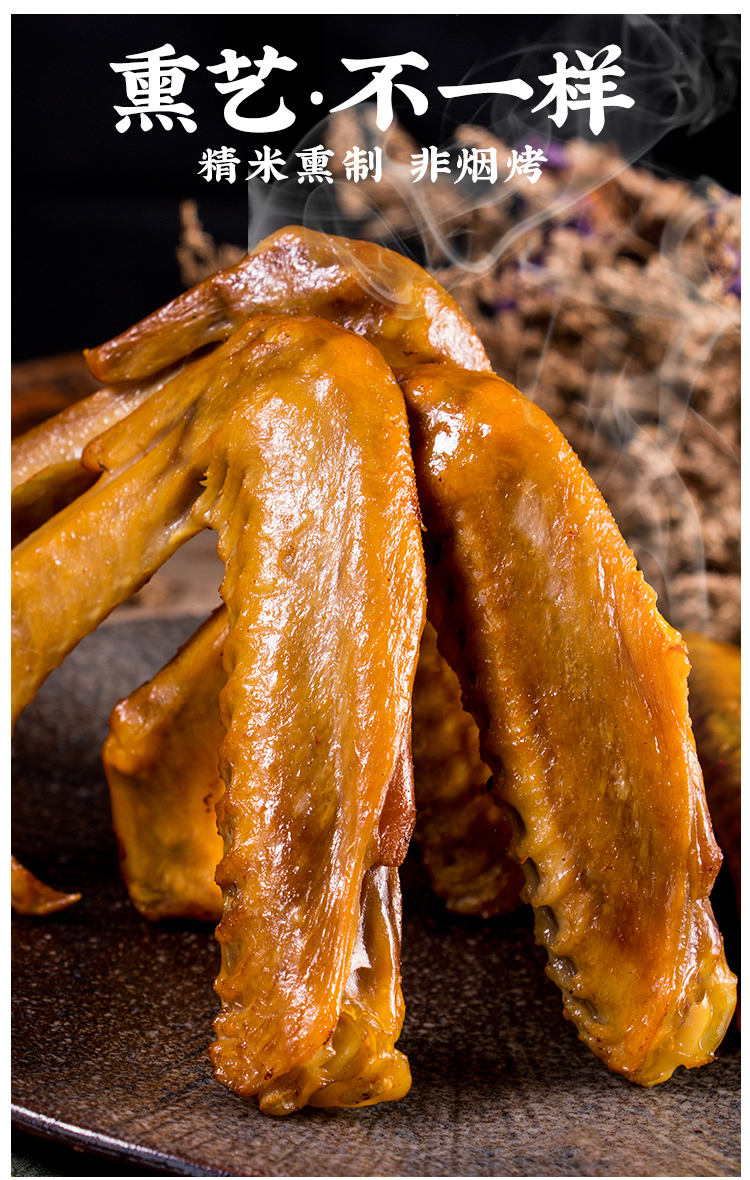 福建三明罗大胡子鸭货熏鸭翅长脖鸡翅尖760克