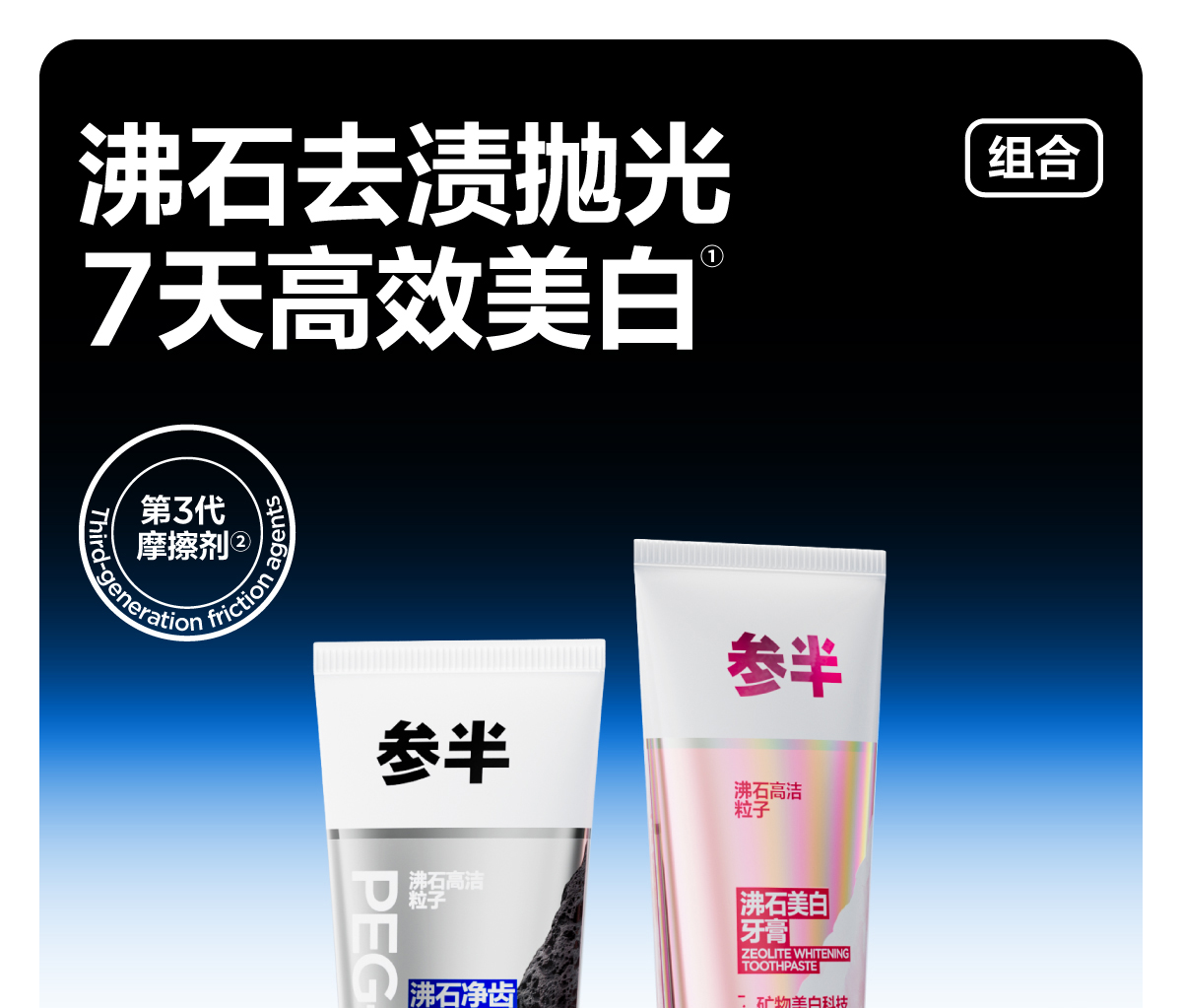 参半沸石美白牙膏+沸石净齿牙膏组合套装