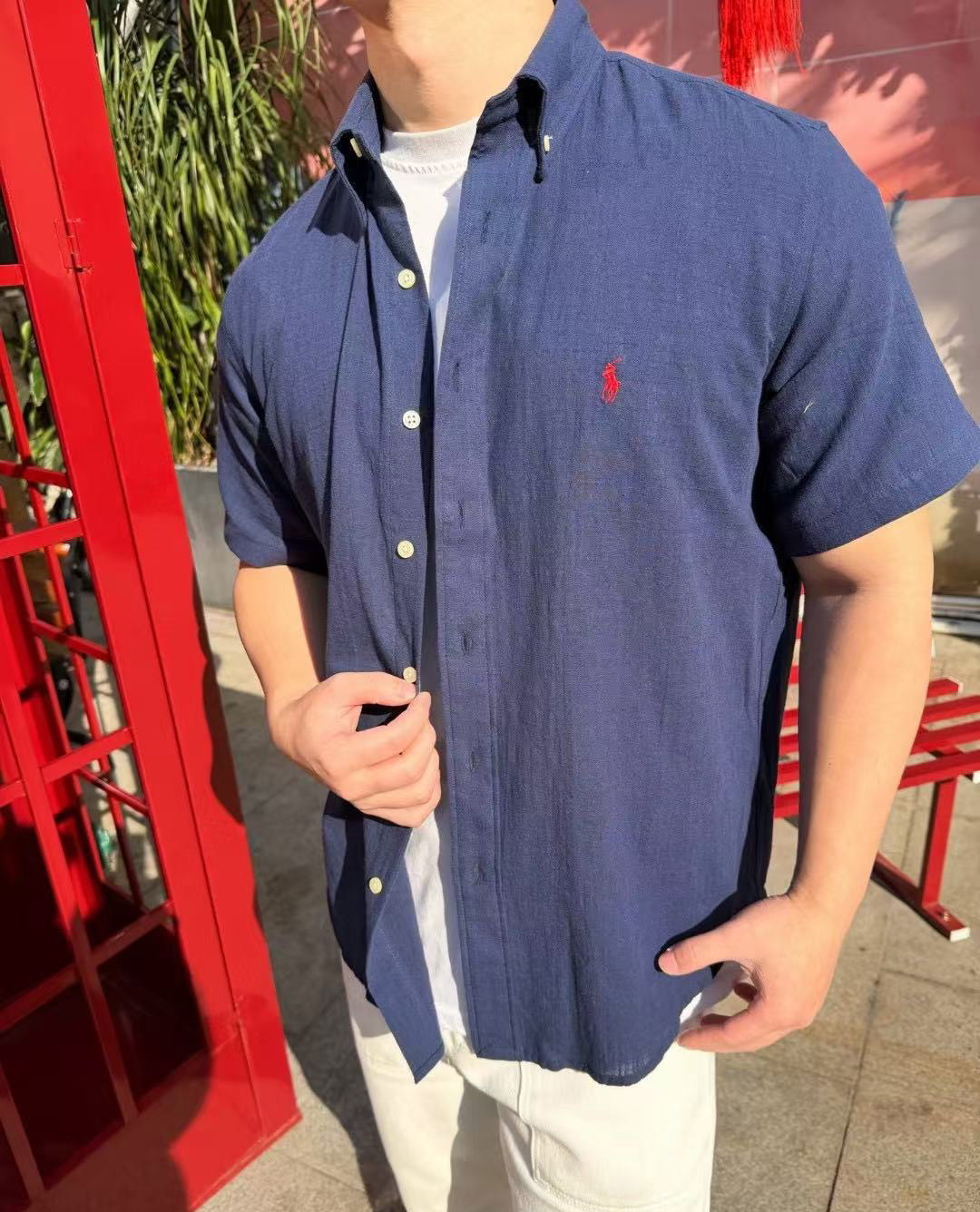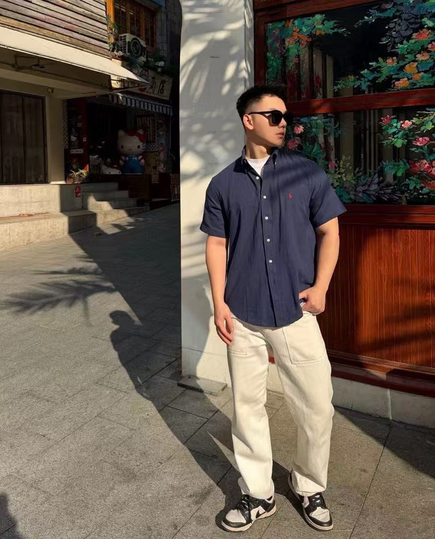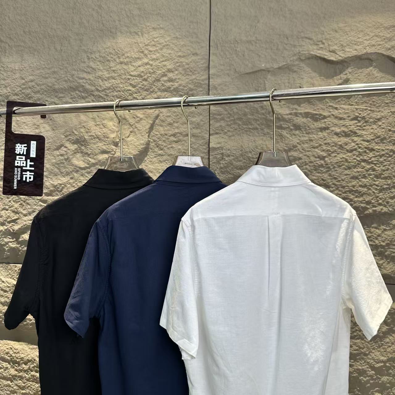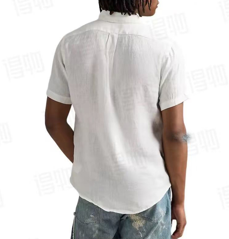 【xm1】经典夏日情侣小刺绣亚麻短袖衬衫!!