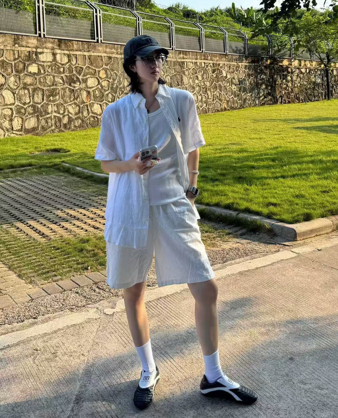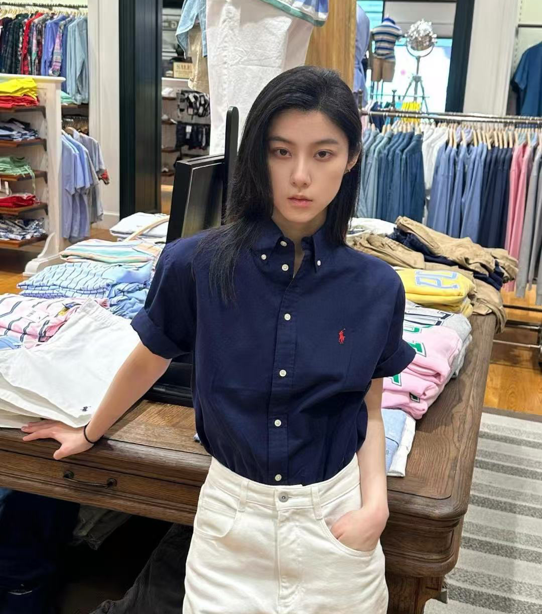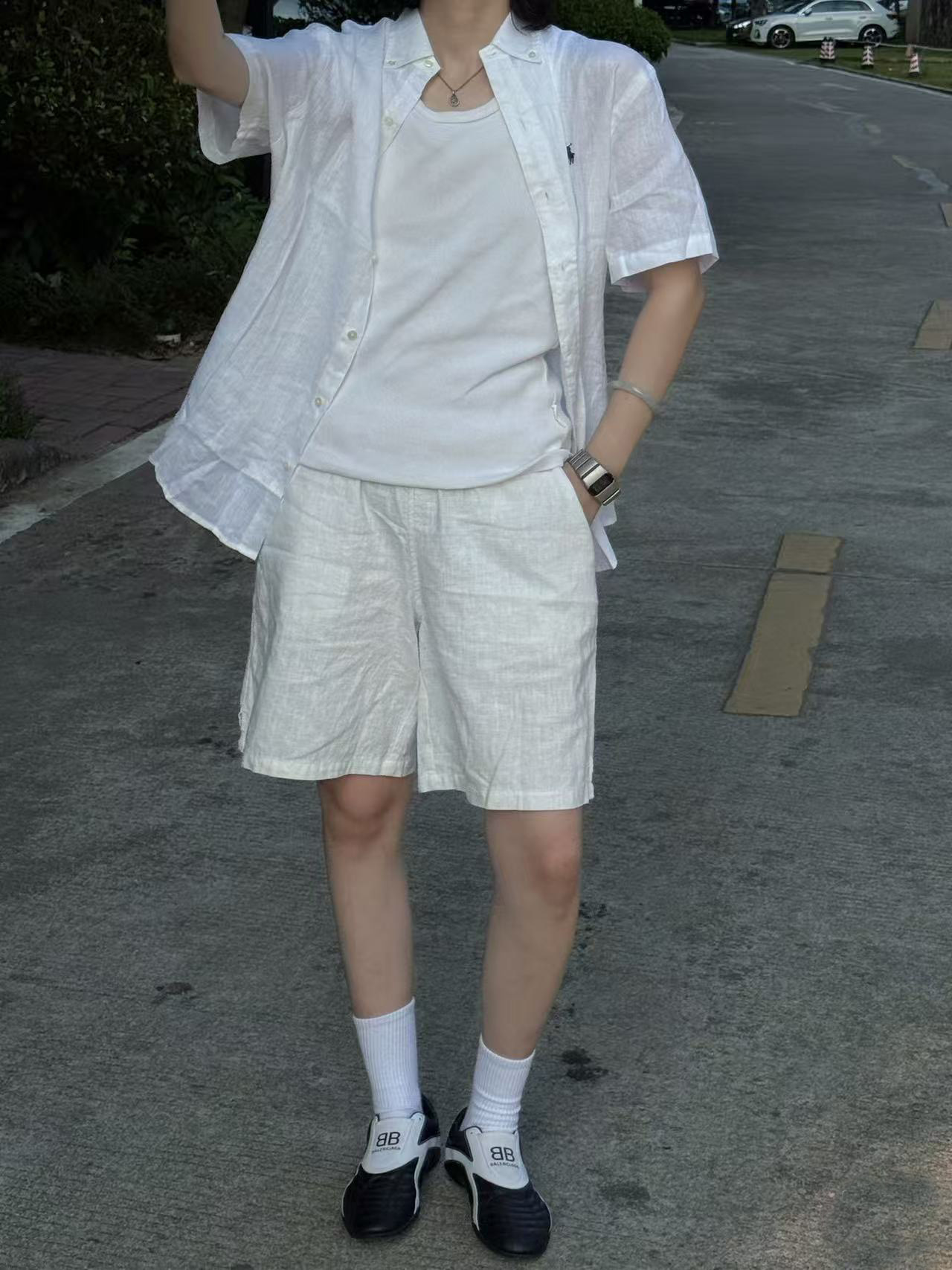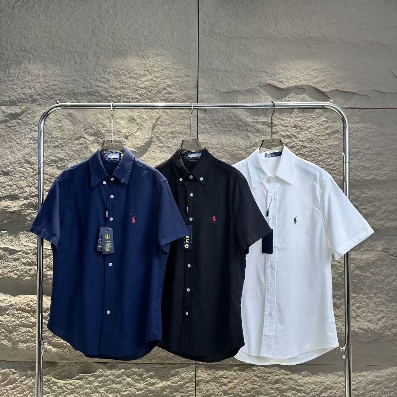 【xm1】经典夏日情侣小刺绣亚麻短袖衬衫!!