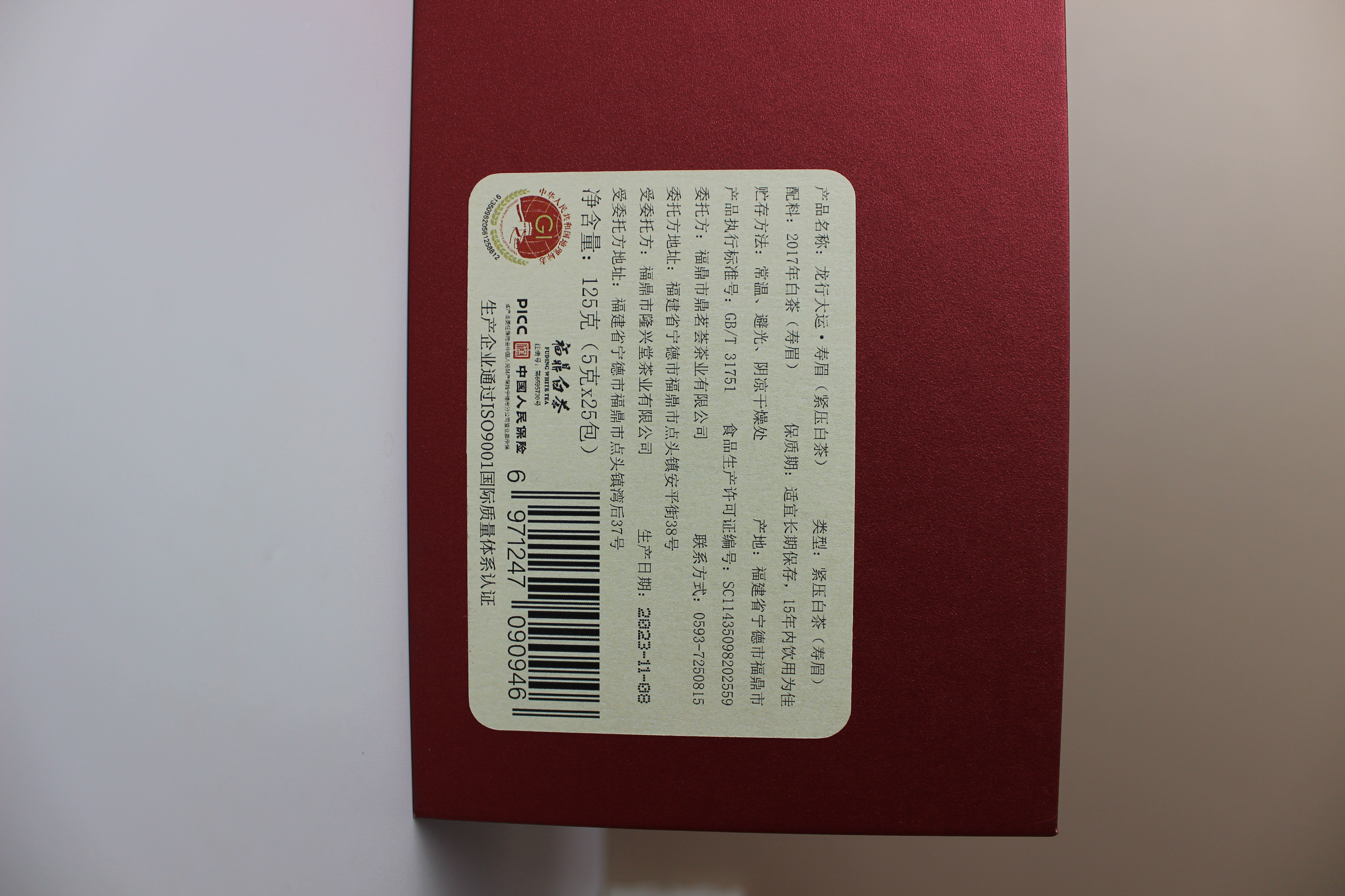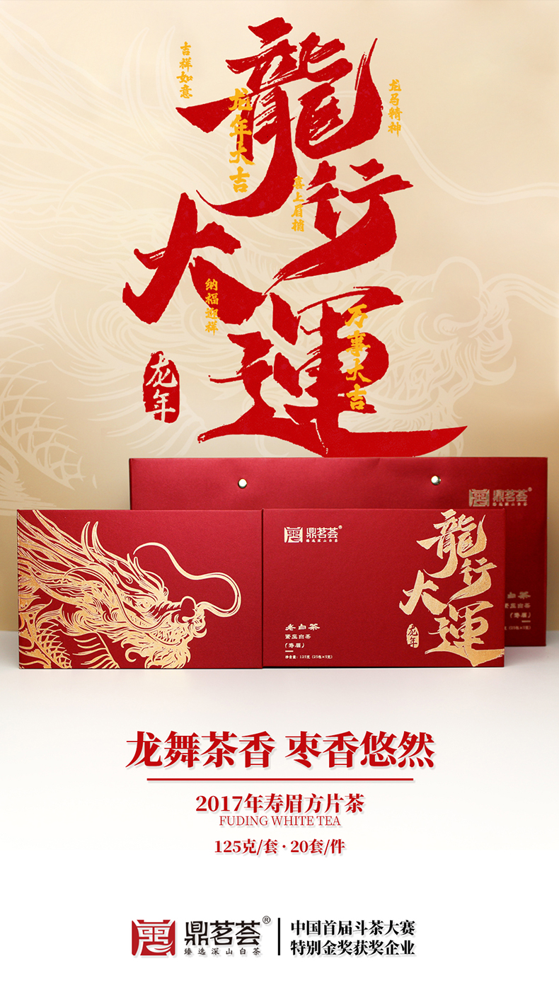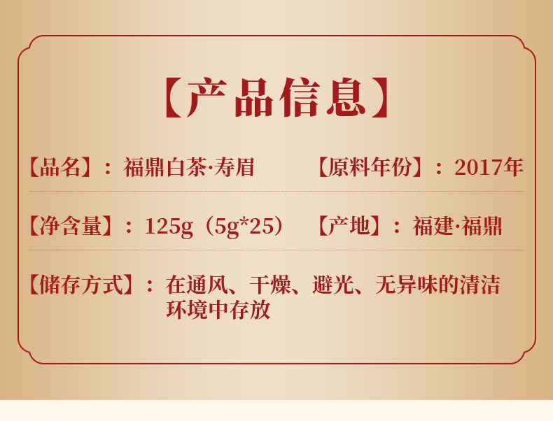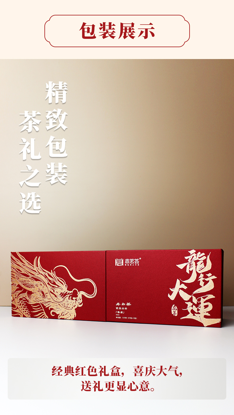 鼎茗荟丨龙行大运 磻溪寿眉 福鼎白茶 2017年原料 125g(5g*25包)礼盒配手提袋