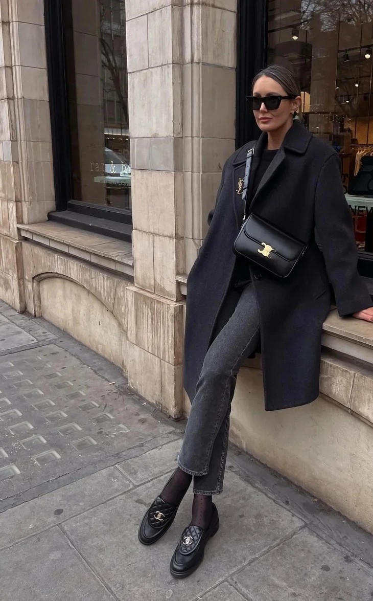 小香菱形格乐福鞋在C位,不紧实穿,还提升整体搭配衣品。