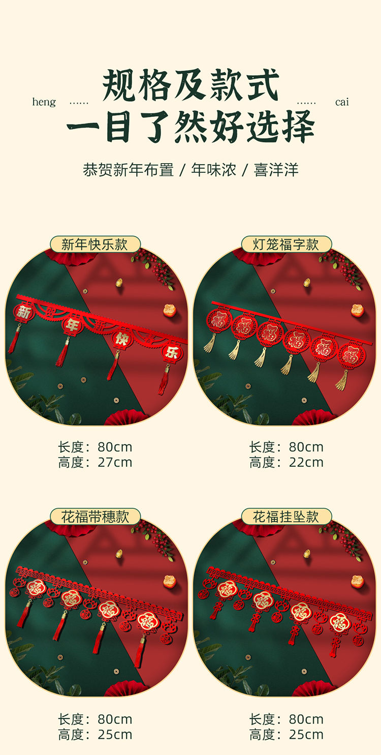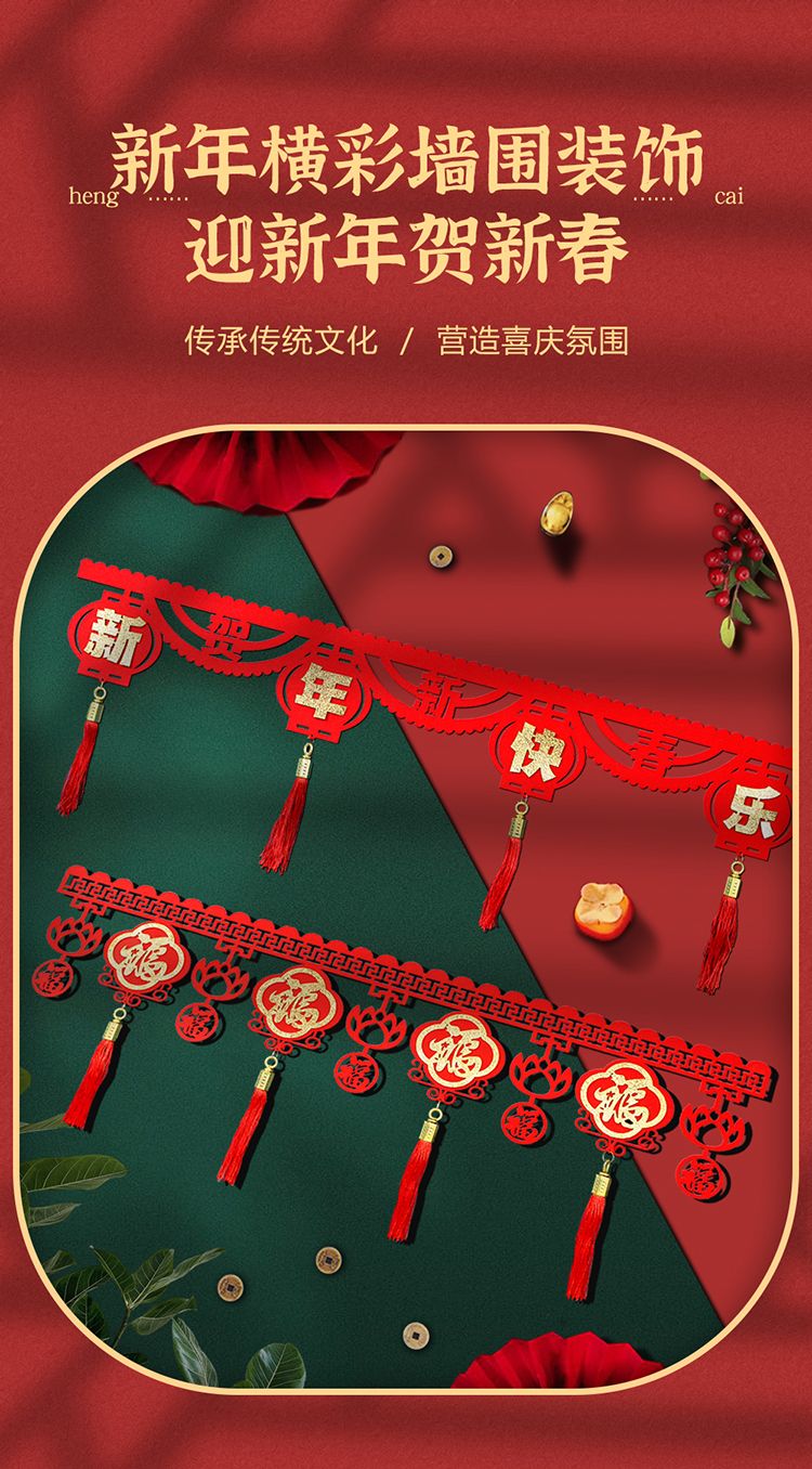 5条装 新年拉花福字室内客厅门帘彩条元旦春节爆款布置用品门上装饰品