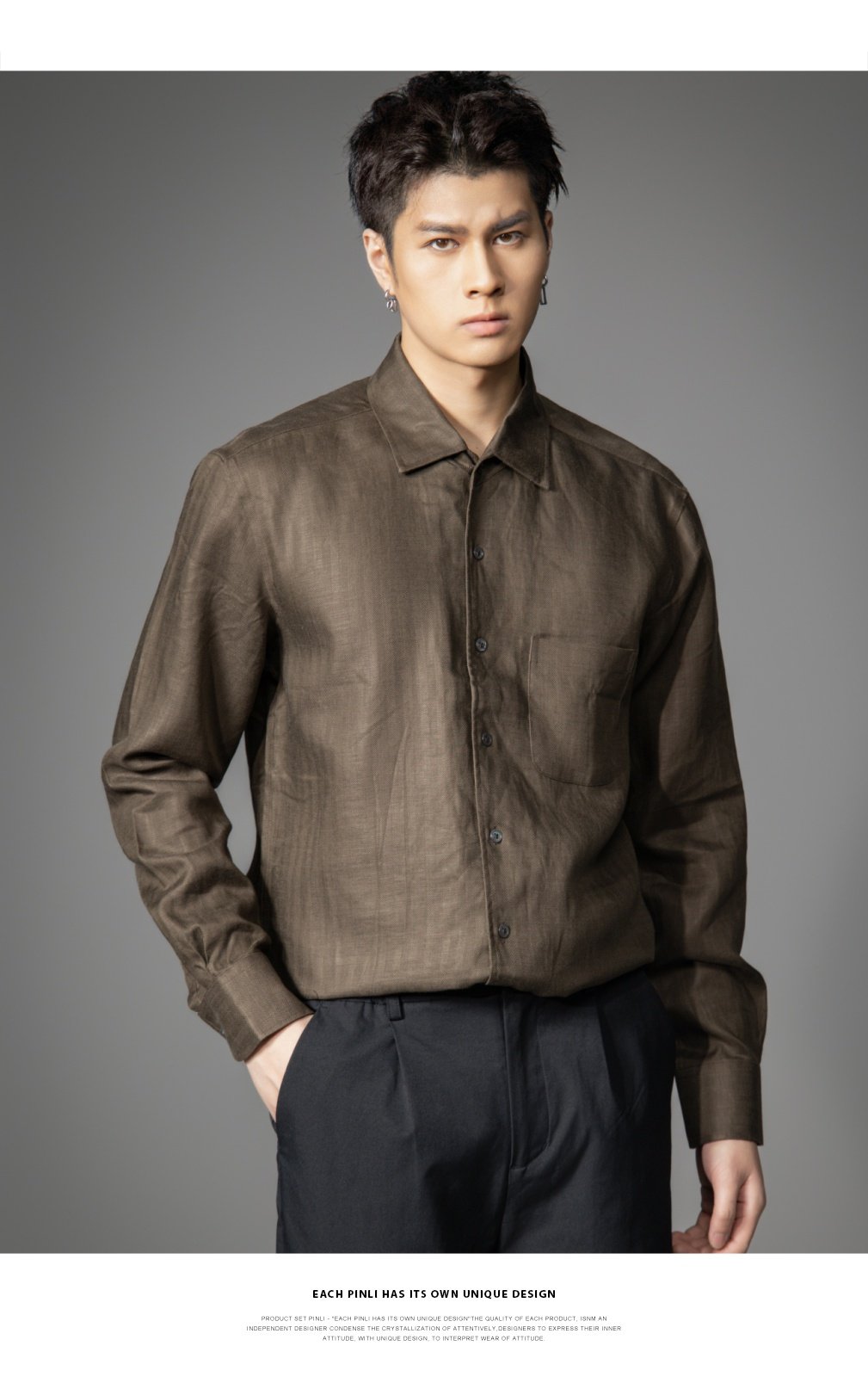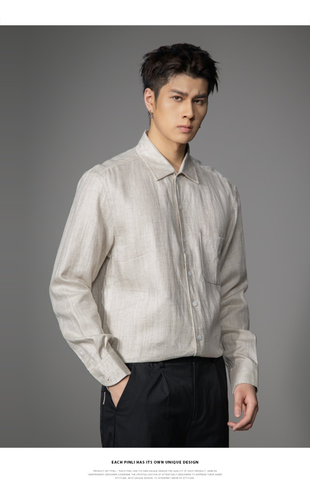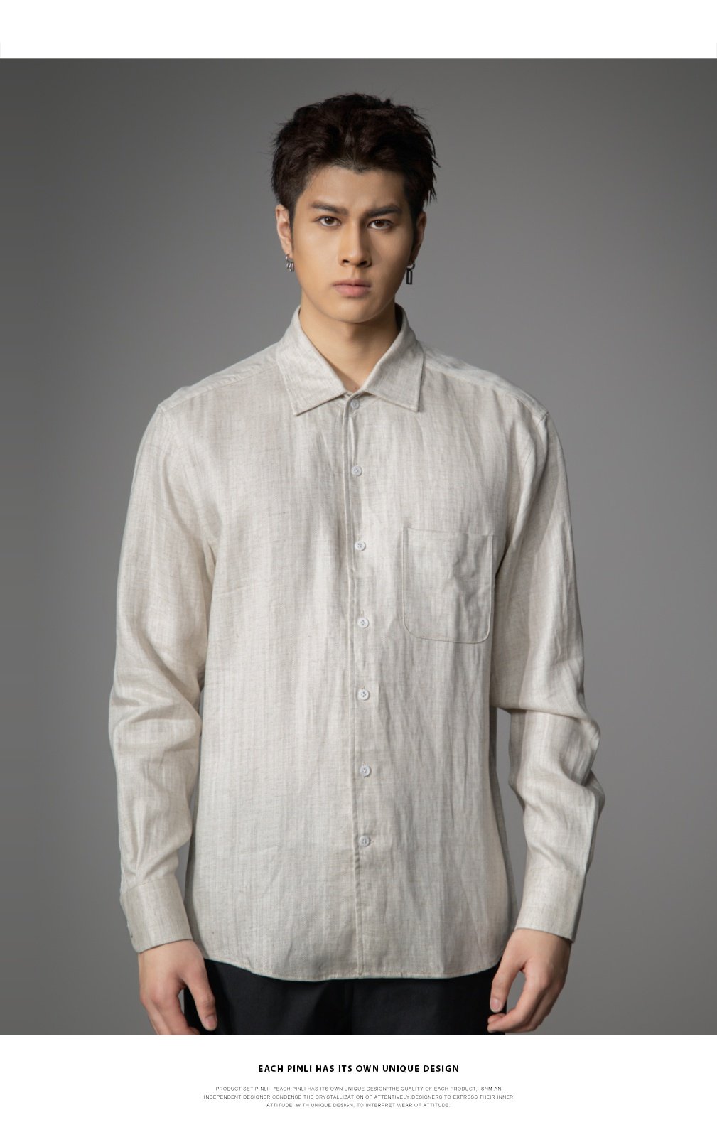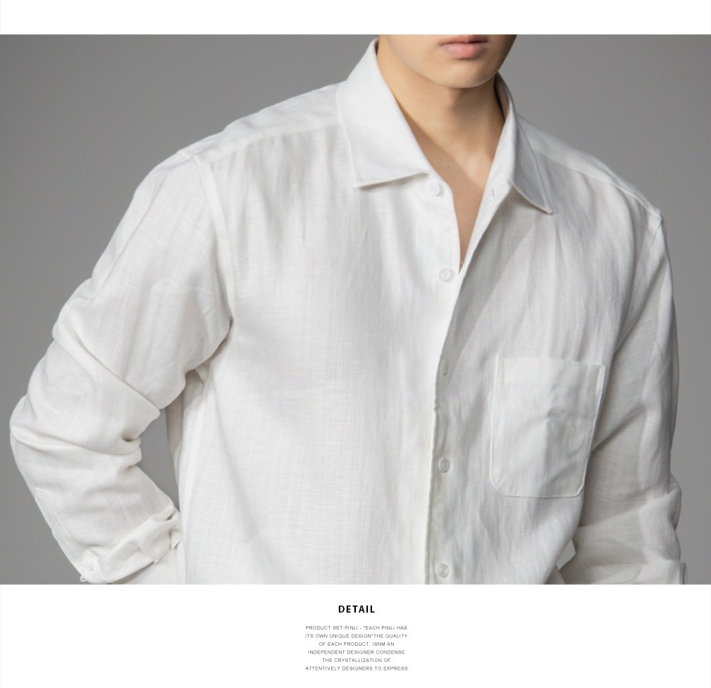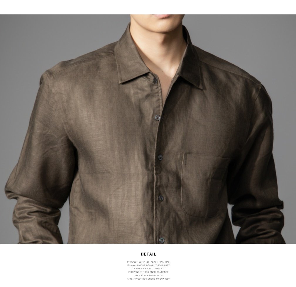 PINLI品立2026春季新款宽松尖领纯色亚麻休闲长袖衬衫打底衬衣男GD262113002