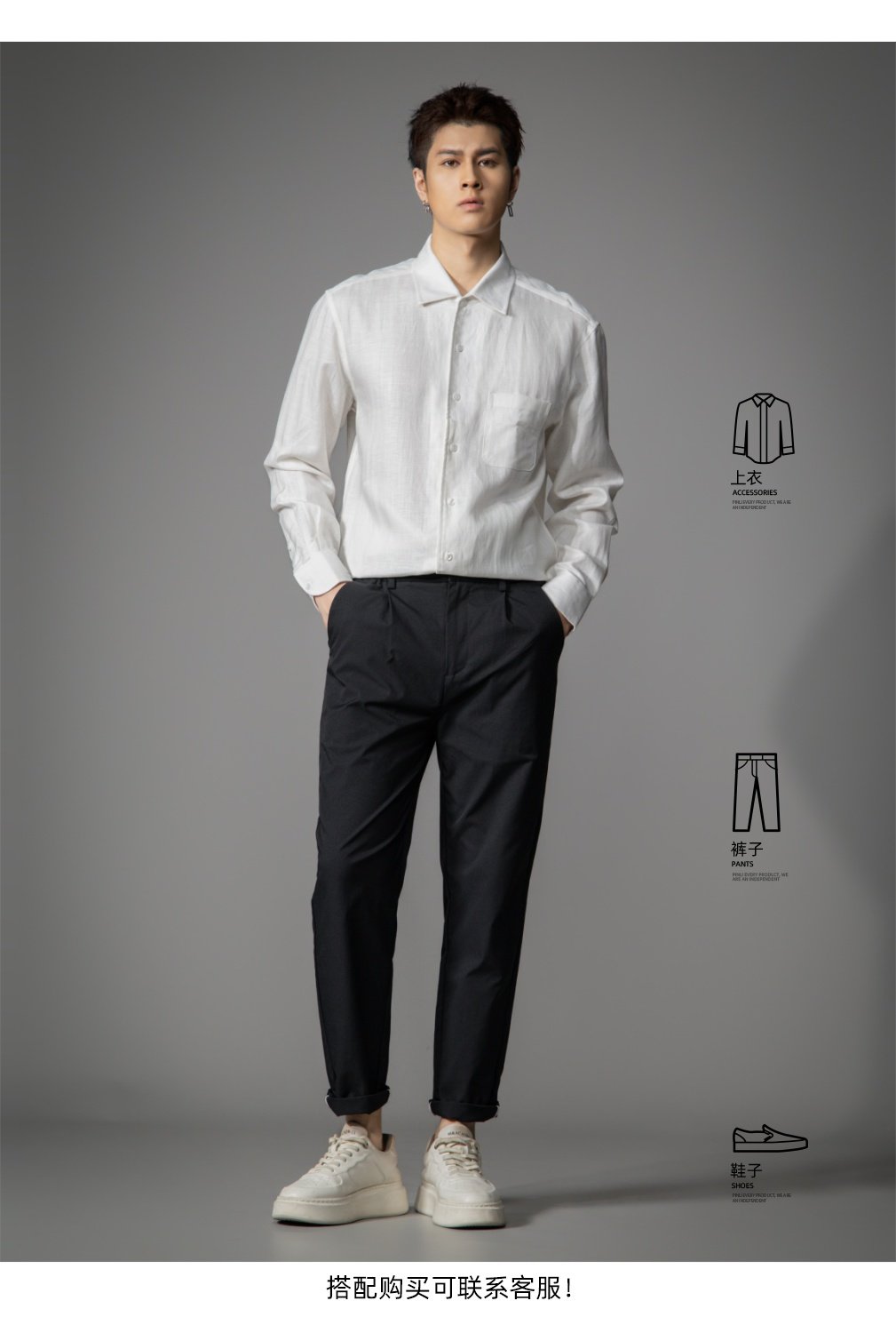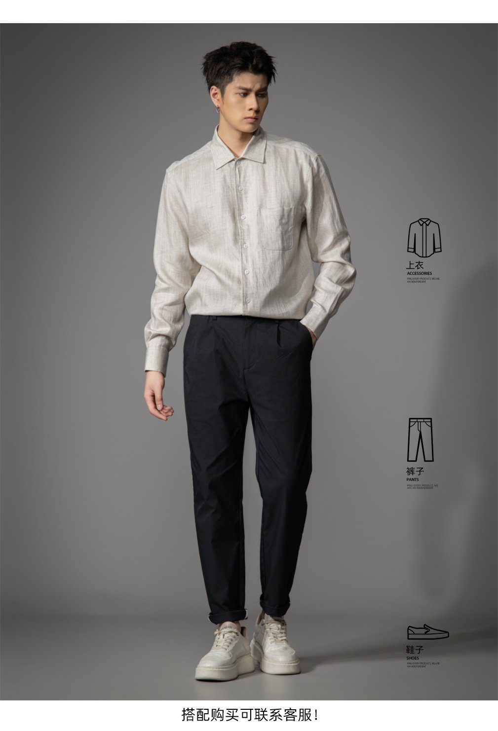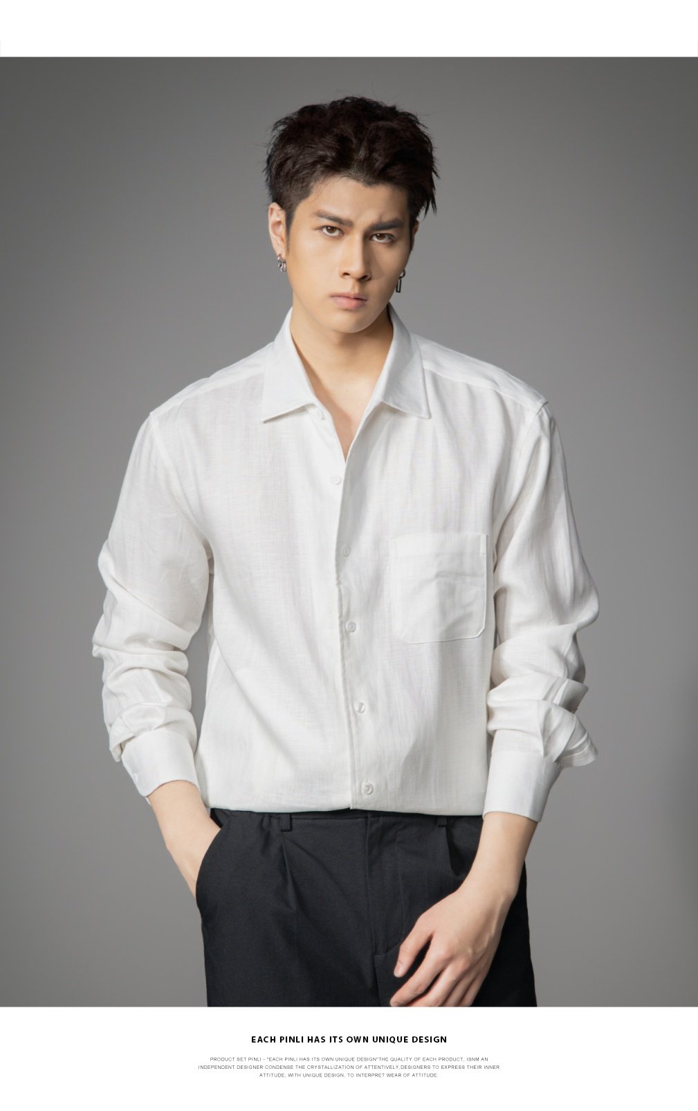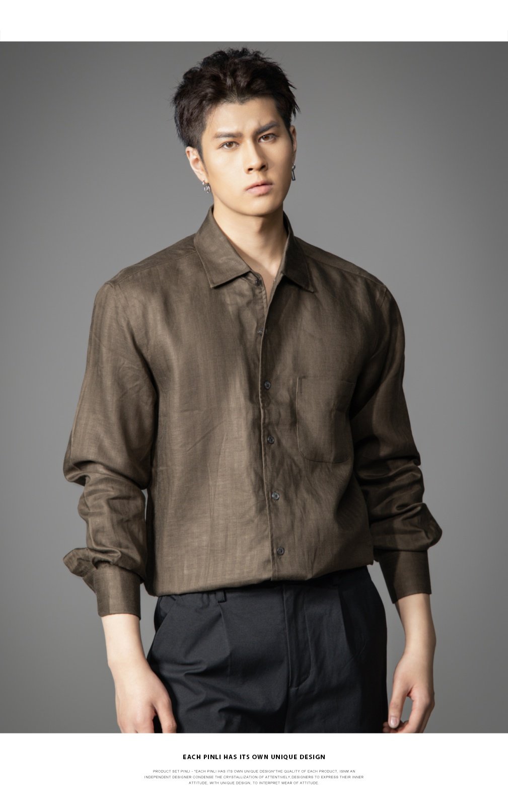 PINLI品立2026春季新款宽松尖领纯色亚麻休闲长袖衬衫打底衬衣男GD262113002