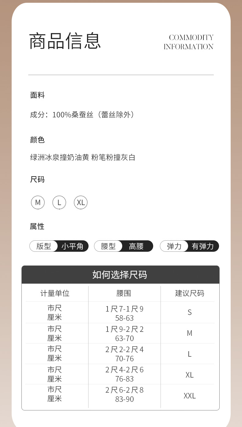 金三塔100%桑蚕丝舒适透气易洗易干女士真丝高腰撞色小平角裤内裤(私密物品不支持退换) NZFCA205