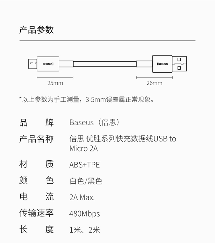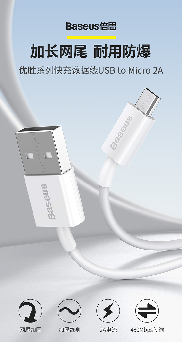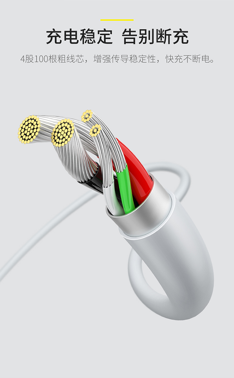 倍思 优胜系列快充数据线USB to M+L+C 3.5A 1.5m