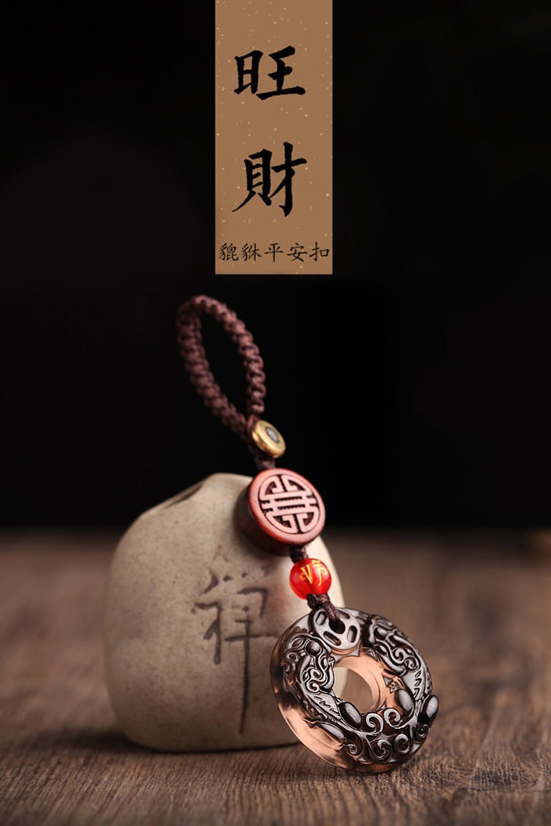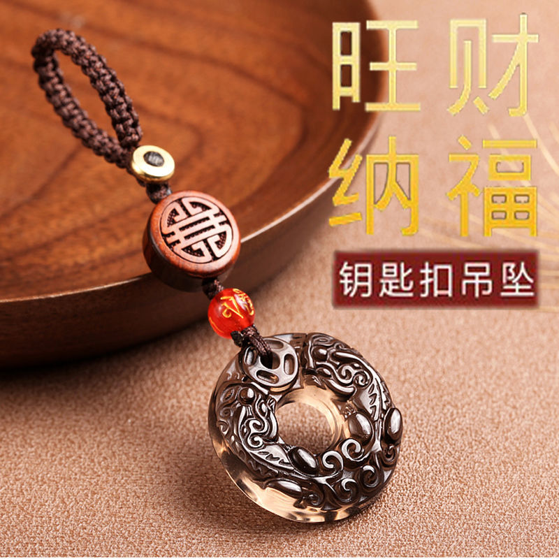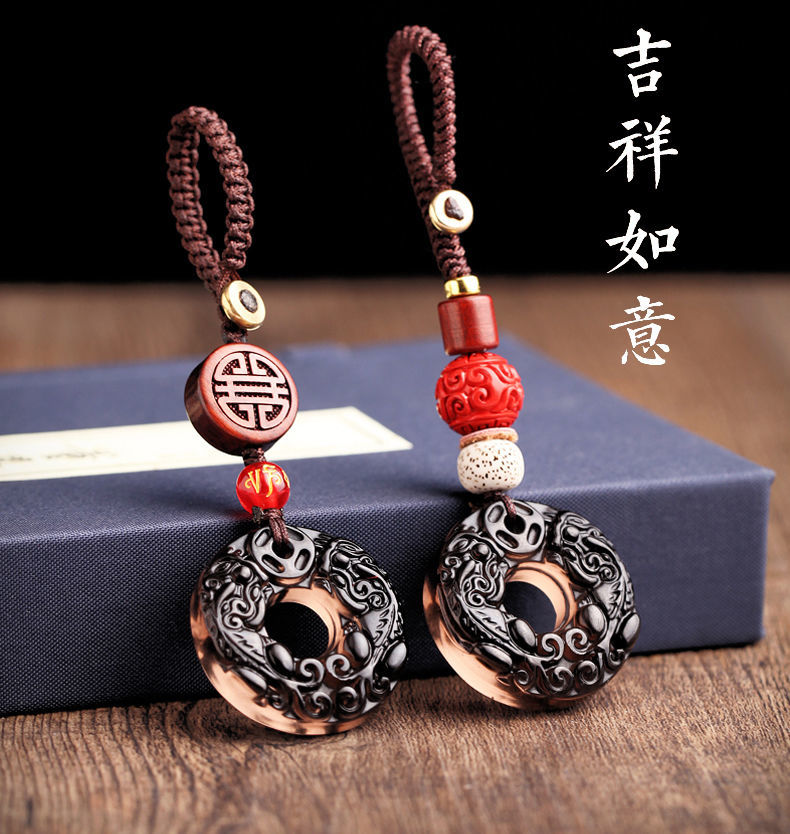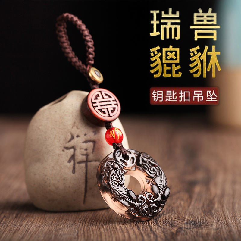 黑曜石貔貅平安扣钥匙扣汽车钥匙扣男款挂饰照钥匙链