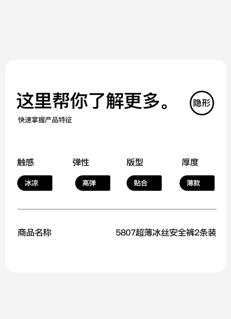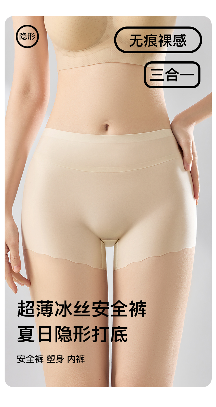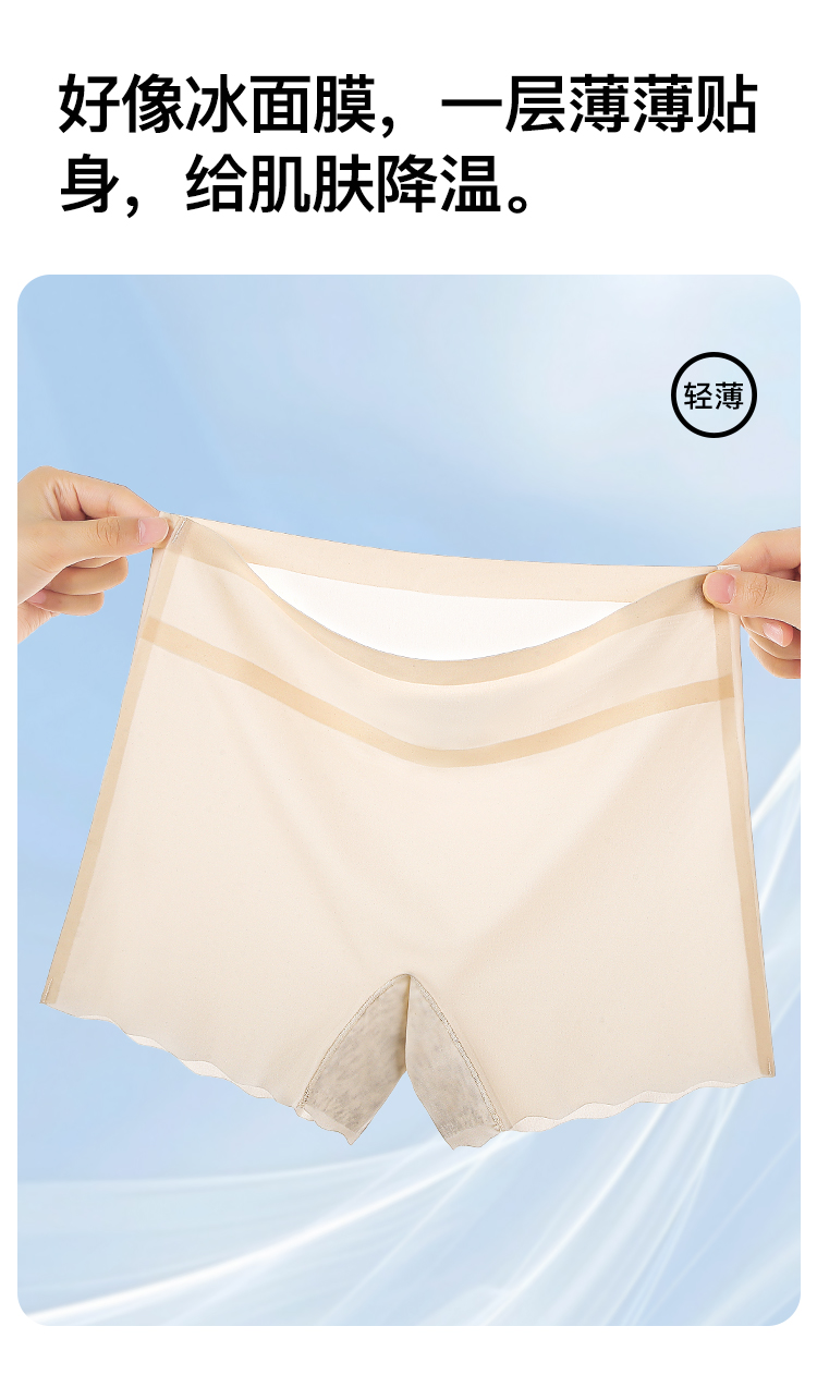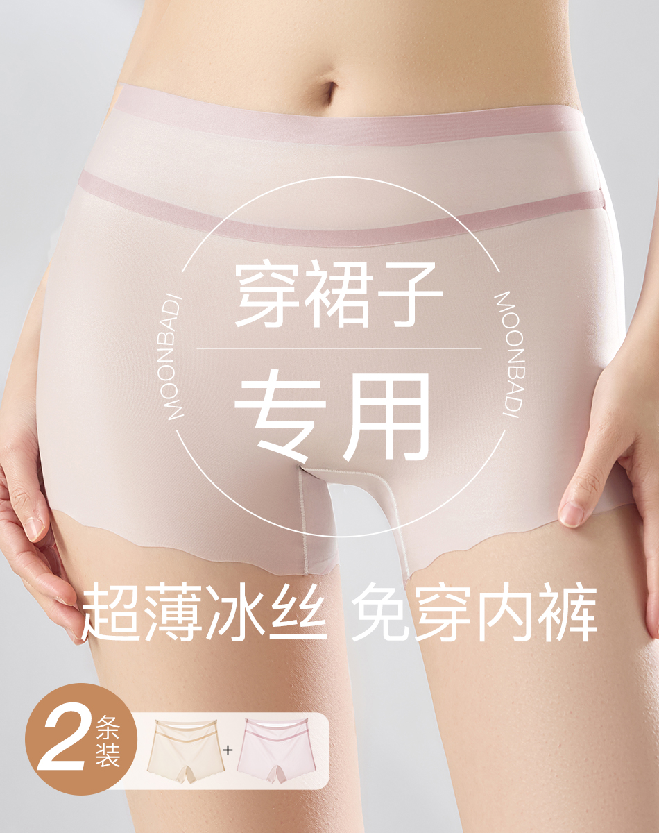 【2条装】夏季薄款无痕冰丝三合一防走光安全裤女10A抑菌棉裆5807超薄冰丝安全裤