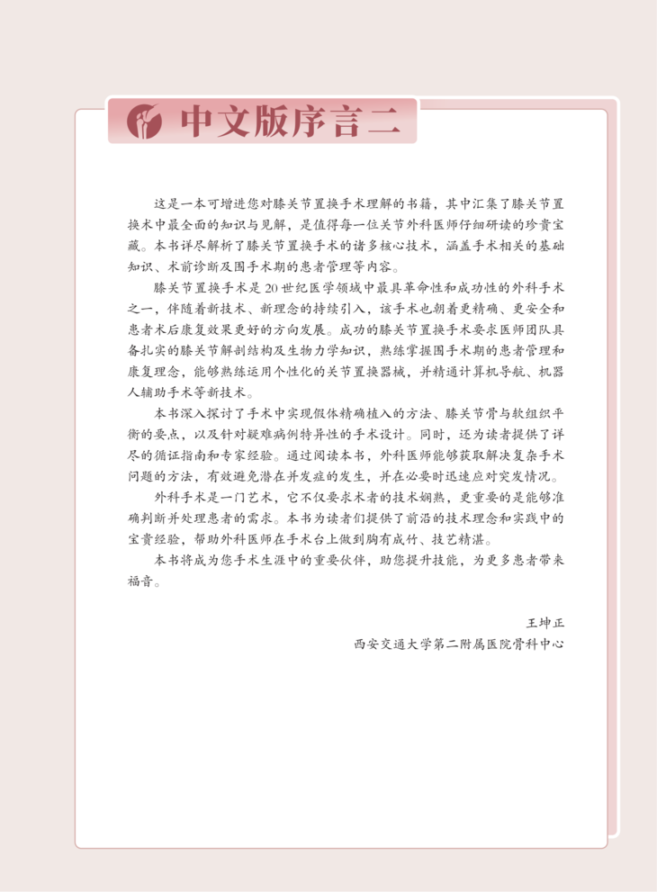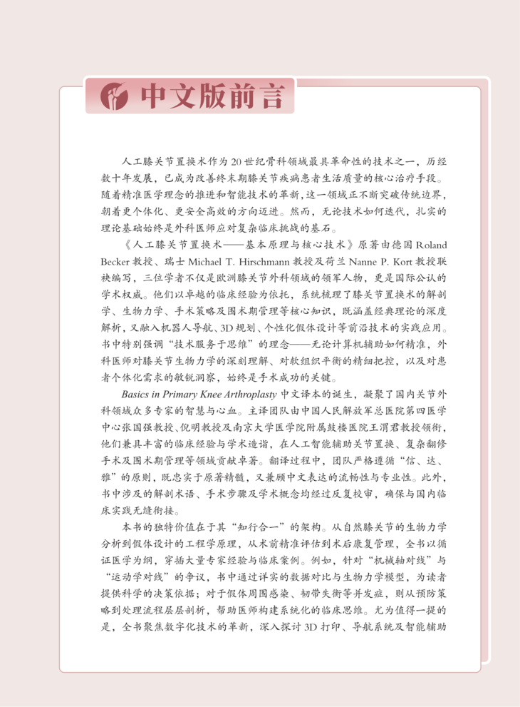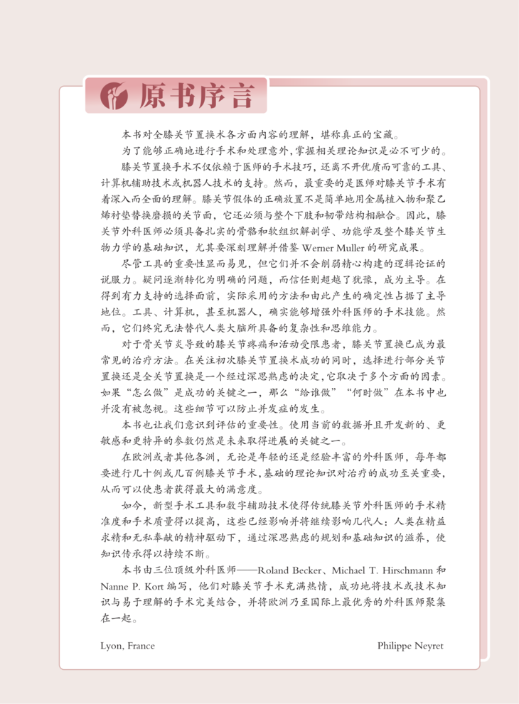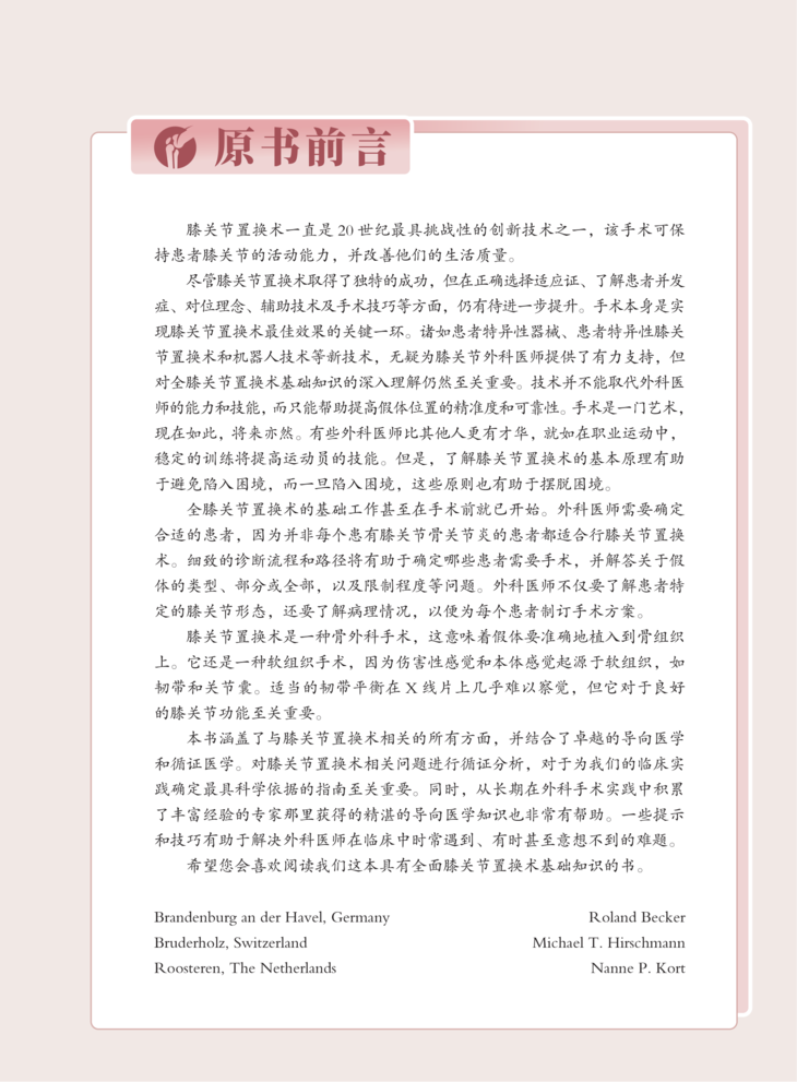 总之,本书是一部集科学性、实用性、前沿性于一体的膝关节置换术权威著作,适合广大外科医师、骨科医师以及相关领域研究人员参考和学习。