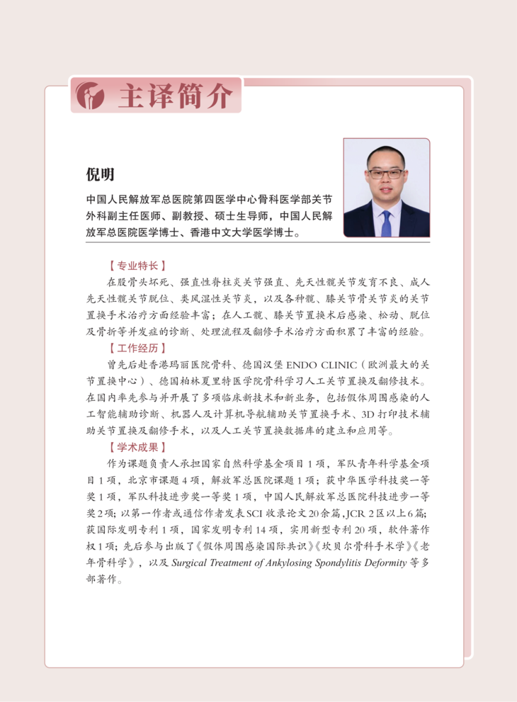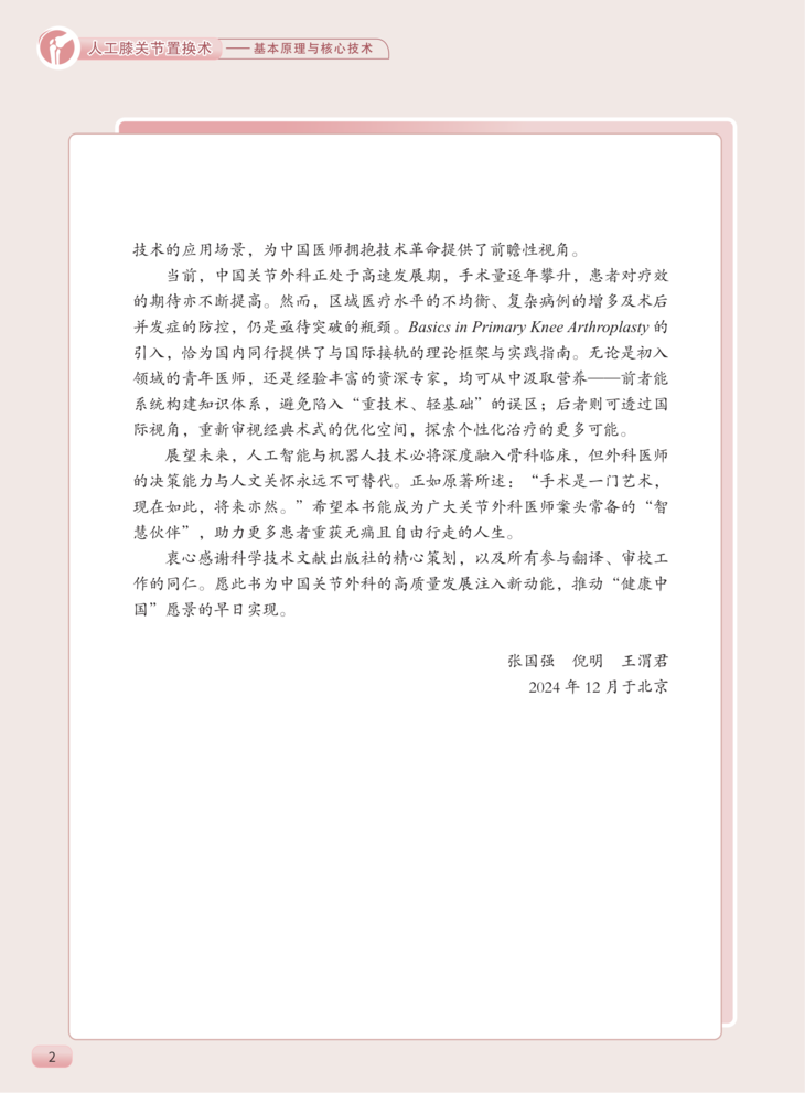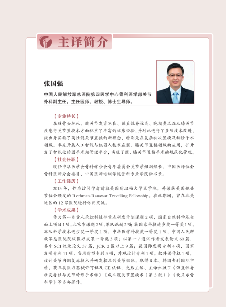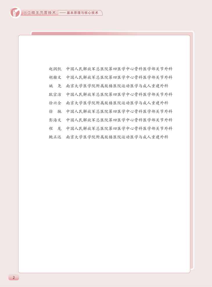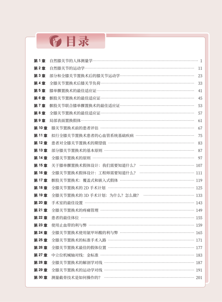 总之,本书是一部集科学性、实用性、前沿性于一体的膝关节置换术权威著作,适合广大外科医师、骨科医师以及相关领域研究人员参考和学习。