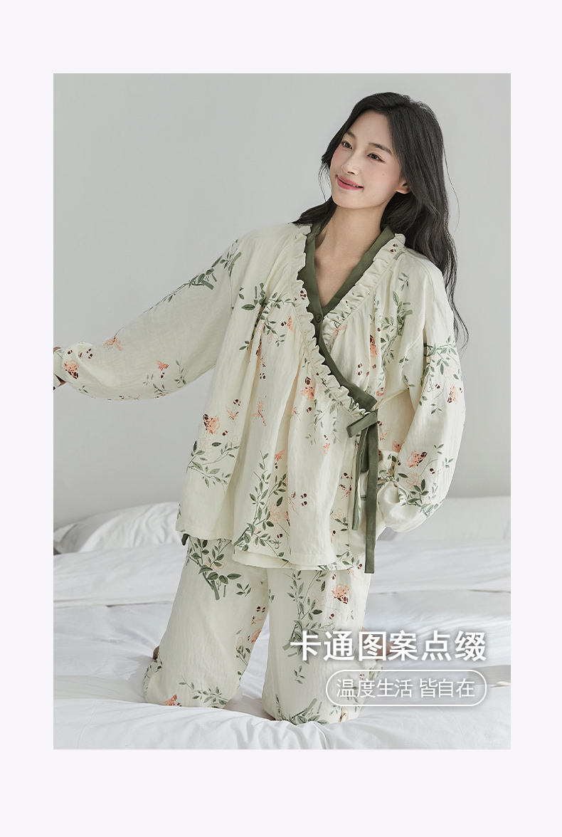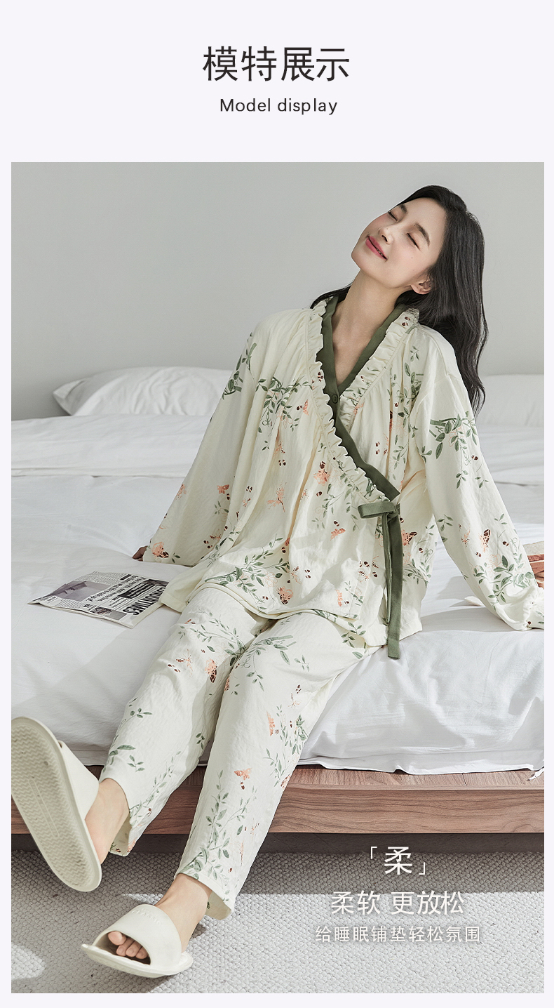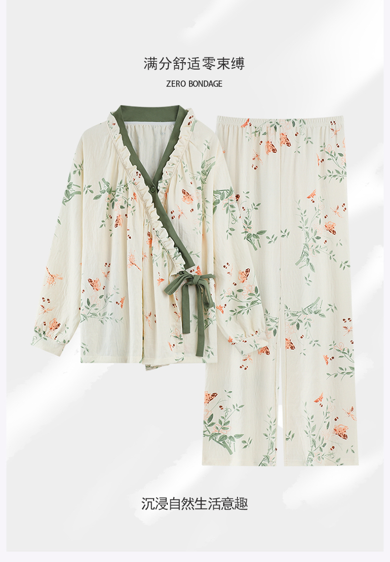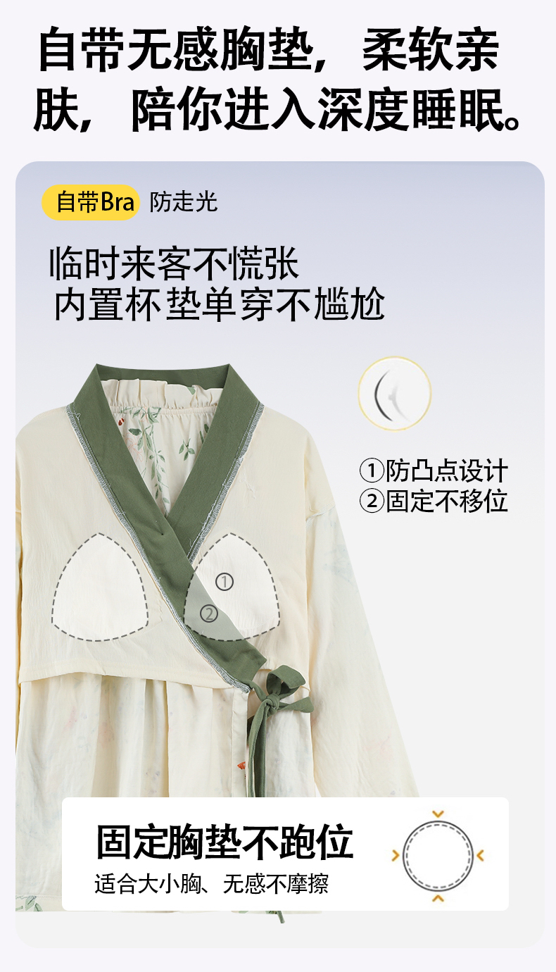 【超模君严选 昕芬儿--新中式和服印花纯棉家居服】天然棉质舒适透气轻盈 亲肤丝滑不跑杯 自带隐形胸垫 防凸点不走光 丝滑软糯触感 宽松版型搭配新中式印花 气质优雅/居家休闲/多款式可选