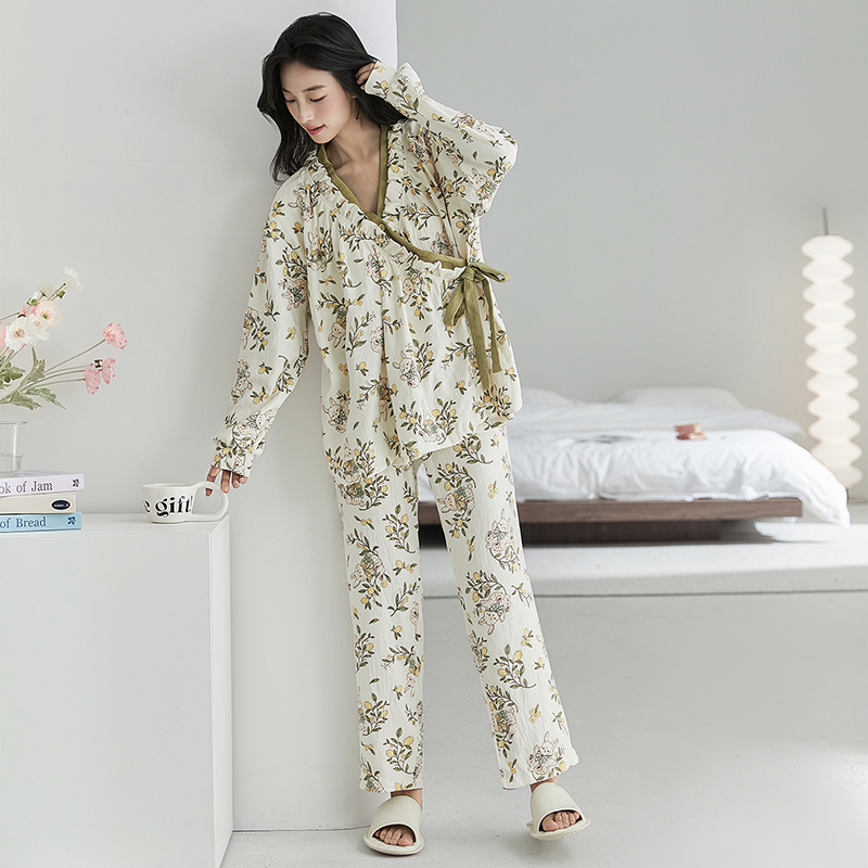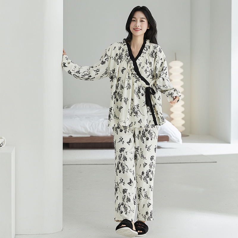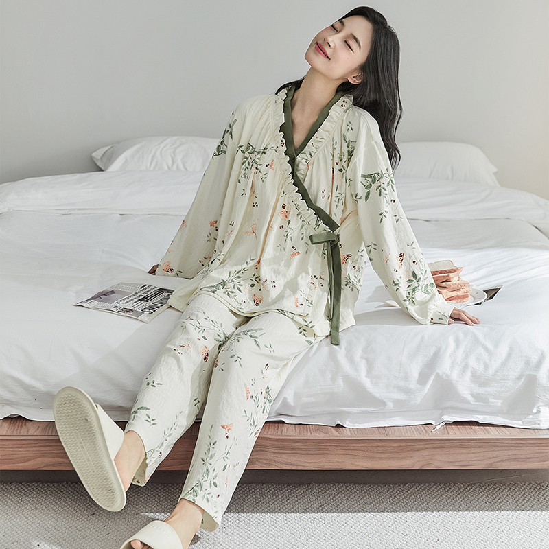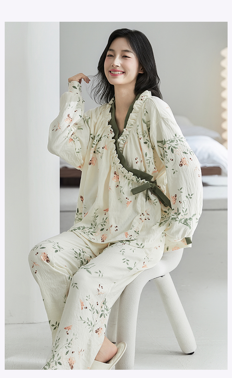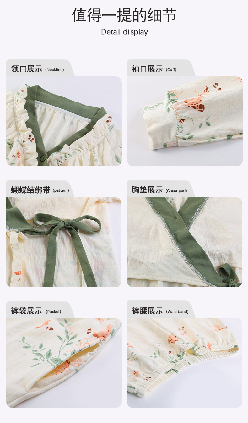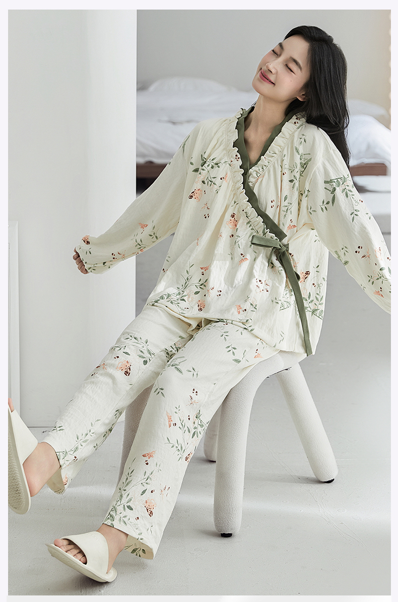 【超模君严选 昕芬儿--新中式和服印花纯棉家居服】天然棉质舒适透气轻盈 亲肤丝滑不跑杯 自带隐形胸垫 防凸点不走光 丝滑软糯触感 宽松版型搭配新中式印花 气质优雅/居家休闲/多款式可选